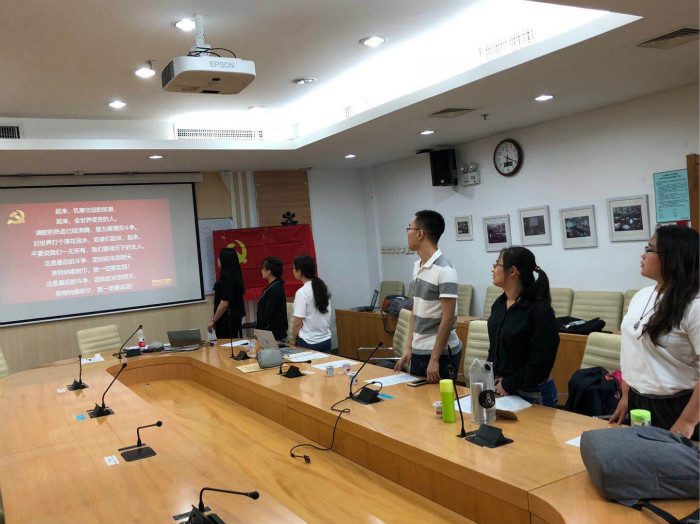 2018年5月27日晚18点,98色花堂 研究生第十二党支部在后主楼1316西研讨室召开了余丽超同志的转正大会。此次会议由宣委周思远同志主持,参会同志共计6名,其中5名正式党员、1名预备党员。 图1 全体起立奏唱《国际歌》 大会开始,主持人清点了到场人数,组织参会同志全体起立奏唱《国际歌》。 之后,余丽超同志宣读了《入党转正申请书》,向党组织汇报了自己在过去一年中的成长,从专业学习、个人思想、学生工作、实习实践等多个方面进行了全面地阐述,也检讨了自身目前还存在的一些不足,明确了自己未来的发展方向。 图2 余丽超同志宣读《入党转正申请书》 接下来,入党介绍人对余丽超同志的转正申请陈述意见,并进行大会讨论。经过严格的审议和正式党员的无记名投票表决,大会通过了余丽超同志的转正申请:98色花堂 研究生第十二党支部共有党员7人(含1名预备党员)。实到正式党员5人,0人提交书面表决意见。经投票表决5票赞成,0票不赞成,0票弃权,赞成人数超过应到会正式党员的半数,支部大会同意接收余丽超同志成为中国共产党党员。 最后一项,余丽超同志发表了自己的入党感言。余丽超同志回顾了在98色花堂 两年充实的研究生生活,表达了自己对学部、党支部,以及班级的热爱,也表示自己在未来的工作岗位中也会不忘初心,立足本职,要做一名优秀的共产党员,处处体现党员的积极性和先进性。 图3 大会参会人员合影 大会结束后,参加此次转正会议的同志集体进行了合影留念。 供稿:周思远 |