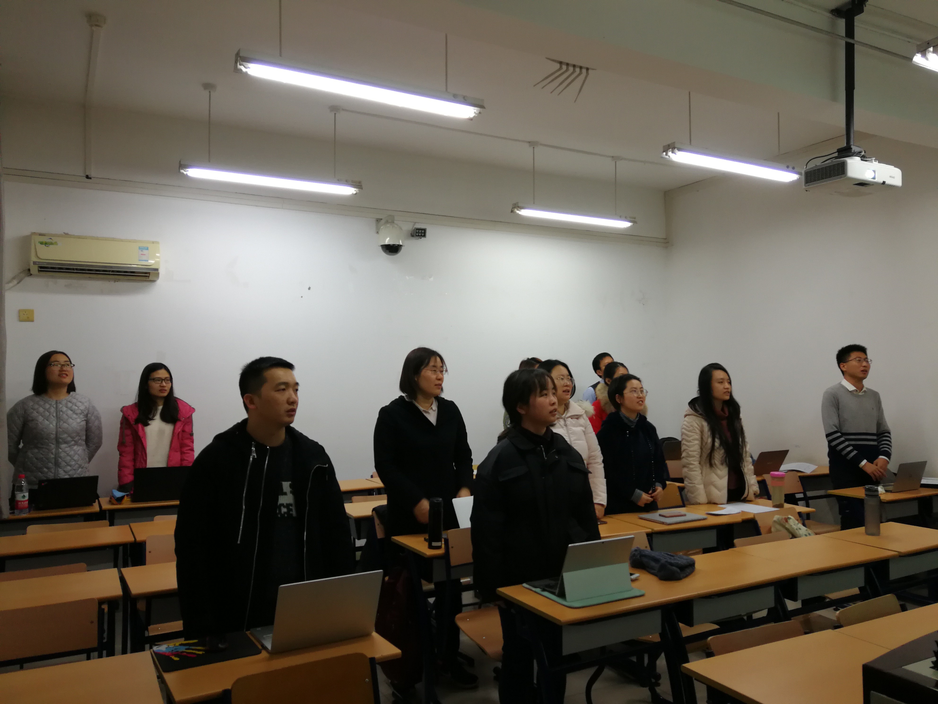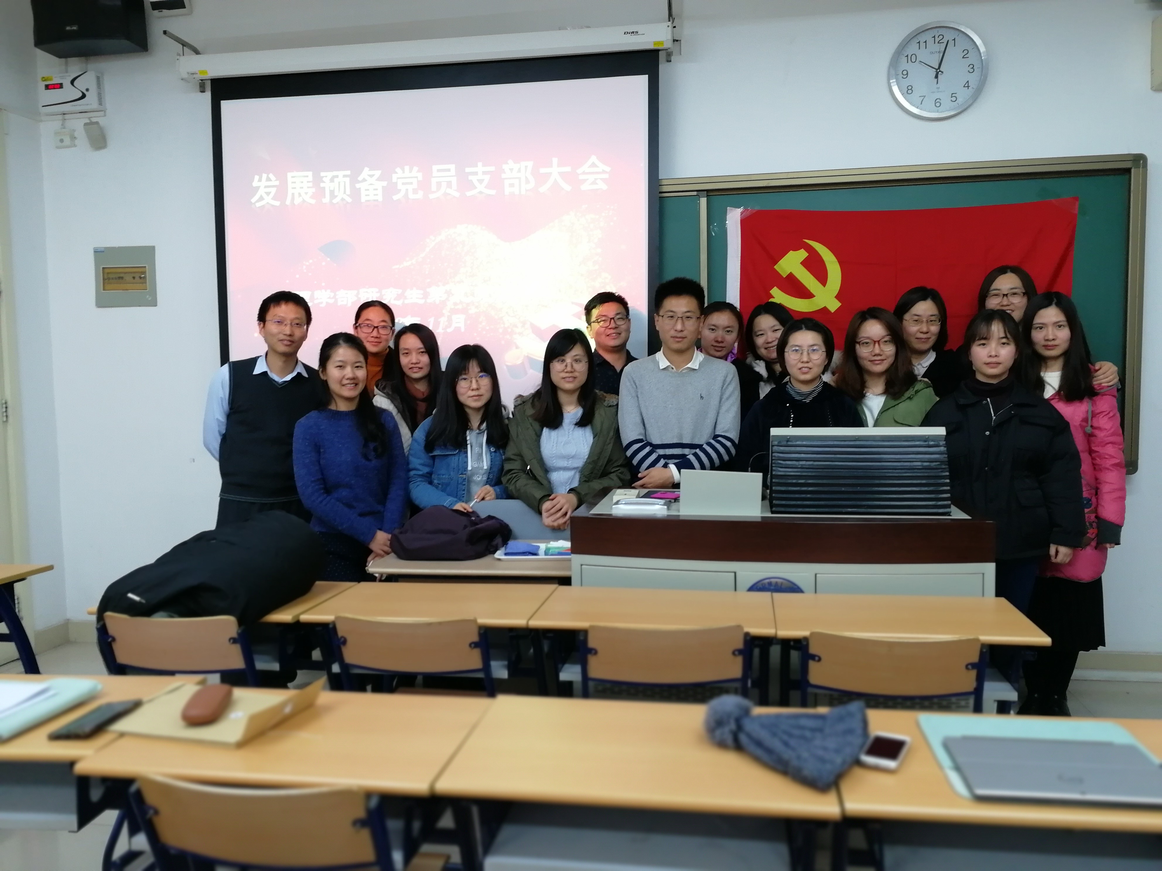 2018年11月29日晚8点,98色花堂 研究生第九党支部在教四楼111教室召开了刘翃同志的发展大会,支部共18名正式党员,实际出席16名,超过正式党员人数的一半,符合召开发展大会的条件。大会由党支部书记笪姝主持。