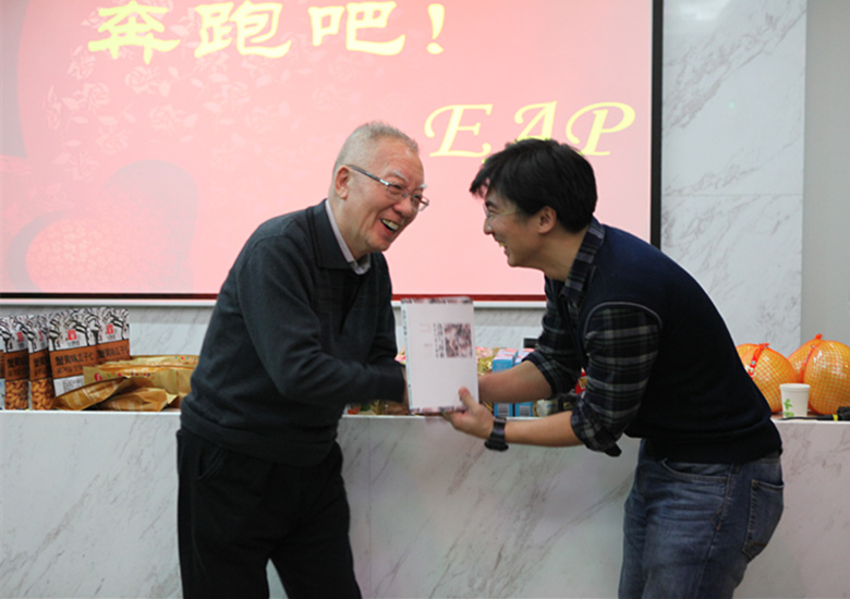 2015年1月19日,刚刚结束了一个学期内容繁多的课程与考试,98色花堂 心理学院2014级应用心理专业硕士EAP方向的学生依旧精力充沛,在本学期课程的最后一天,组织举办了一场“奔跑吧,EAP”的主题集体活动。本次活动在心理学院MAP中心的支持和帮助下,老师同学们各显神通,将这次活动从入场到结束都组织的有声有色,有年味有动感,有惊喜有感动,有收获有成长。 活动的热身节目是非常具有中国年味的猜灯谜,这一节目弥补了同学因学习要求而无法在家过元宵节的小小遗憾。猜灯谜结束后,80岁高龄的彭聃龄教授脸上洋溢着笑容走进了同学们的视野,这也是学院为2014级应用心理EAP方向的学生带来的第一大惊喜。彭聃龄老师慈祥的笑容和温厚的话语让同学倍感亲切,也让同学们回忆起学期初彭老师为大家教授普通心理学课程的温馨场景。同时,彭老师还将附有他签名题字的最新作品作为特等奖的奖品送给同学,更是让同学们的心里感到无限暖意。 图一 北师大心理学院彭聃龄教授向2014级应用心理专业硕士EAP方向的学生赠书 心理学院书记乔志宏教授,副院长林丹华教授、刘力教授、张西超教授,副书记王瑞敏老师,院长助理胡思源老师以及刘翔平教授都在百忙之中专程来和学生们一同庆贺一同游戏,这也是心理学院为EAP学生们带来的第二大惊喜。各位领导在致辞鼓励了2014级应用心理专业硕士EAP方向的学生之后,还参加了活动中的第一个环节-------萝卜蹲。在轻松愉快的气氛中,几位老师以及彭聃龄老师一同做起了萝卜蹲的游戏。在这个时刻,游戏已不止是游戏,更是搭建在老师和学生中间的桥梁;老师也不仅是老师,更是学生的亲密的家人和朋友。 图二 北师大心理学院领导参与2014级应用心理专业硕士EAP方向班学生活动 接下来的“你来比划我来猜”游戏更是让活动气氛在游戏选手的竭力表演中和观众的爆笑声中再度升温。游戏结束后,心理学院副院长张西超老师推着一个写着“EAP黄埔一期生日快乐”的蛋糕走进教室,把这场活动推向了高潮,也是学院MAP中心为EAP学生们精心准备的第三个惊喜。带着惊喜和感动,师生们同庆2014级应用心理专业硕士EAP班诞生一周年,以及同庆几位在1月份出生的同学生日快乐。彭聃龄老师感慨地说:“每当这种时候,我们就没有年龄差异了,男生都是小伙子,女生都是小姑娘。” 图三 北师大心理学院2014级应用心理专业硕士EAP班集体活动气氛温馨,惊喜不断 最后的“当然了”游戏和踩气球游戏在同学们兴奋的欢呼中圆满地结束了这次狂欢party,也结束了2014级应用心理EAP方向专业硕士第一学期的课程。浓浓的不舍和热切的期待,都会化作EAP的同学们更强有力的动力,在今后的课程中有更出色的表现,不仅让我们为北师大心理学院骄傲,更让北师大心理学院为我们自豪。 图四 北师大心理学院2014级应用心理专业硕士EAP班集体活动集锦 也在此感谢2014级应用心理专业硕士EAP方向的学生王凯、王坤、施鸿宇、逯小方、崔颖丽、高逸超、金昊天、孙美宇、戴铮然几位同学利用课余时间精心筹划了了此次班级主题活动;感谢活动主持王石、刘晓曦、纪圆北和黄凯莉同学;以及亲自题写的对联,为活动增添气氛与诗意的高川同学。 图五 北师大心理学院2014级应用心理专业硕士EAP班集体活动留念合影 新年新气象,带着梦想奔跑吧,EAP! 供稿人:2014级MAP-EAP班 张武悦同学 |