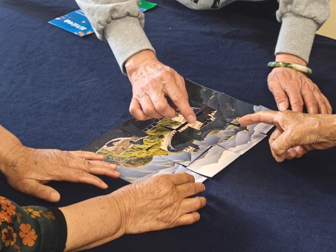 脑力运动会项目,以促进认知健康与锻炼思维能力为目标,精心设计了心算挑战、诗词接龙、图形拼图等益智类游戏,搭配手指操互动环节,帮助长辈激活思维活力、提升认知功能。项目共有8位本科生参与,他们先后三次前往泰康燕园,共开展了6场脑力运动会,总时长近8小时,累计吸引了103位长辈积极参与。同学们在活动现场担任活动策划与执行人员,负责现场组织、规则讲解及互动引导,带领长辈们沉浸式地体验了各种丰富多彩的益智游戏。