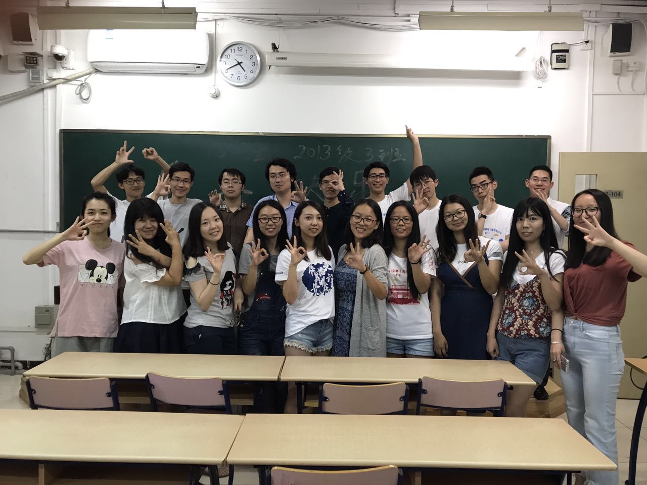 6月21日下午15:30,学部13级本科3班组织了毕业班会,此次班会由班主任李爽老师主持。 班会上,同学们依次用三个词重新介绍了现在的自己,分享了自己未来的去向、生活上的打算,并和大一时自己的“三个词”对比,和其他同学一起见证了四年来的成长历程和改变,以及和班级、和同学的点点滴滴。 会后,同学们和李爽老师合影留念。