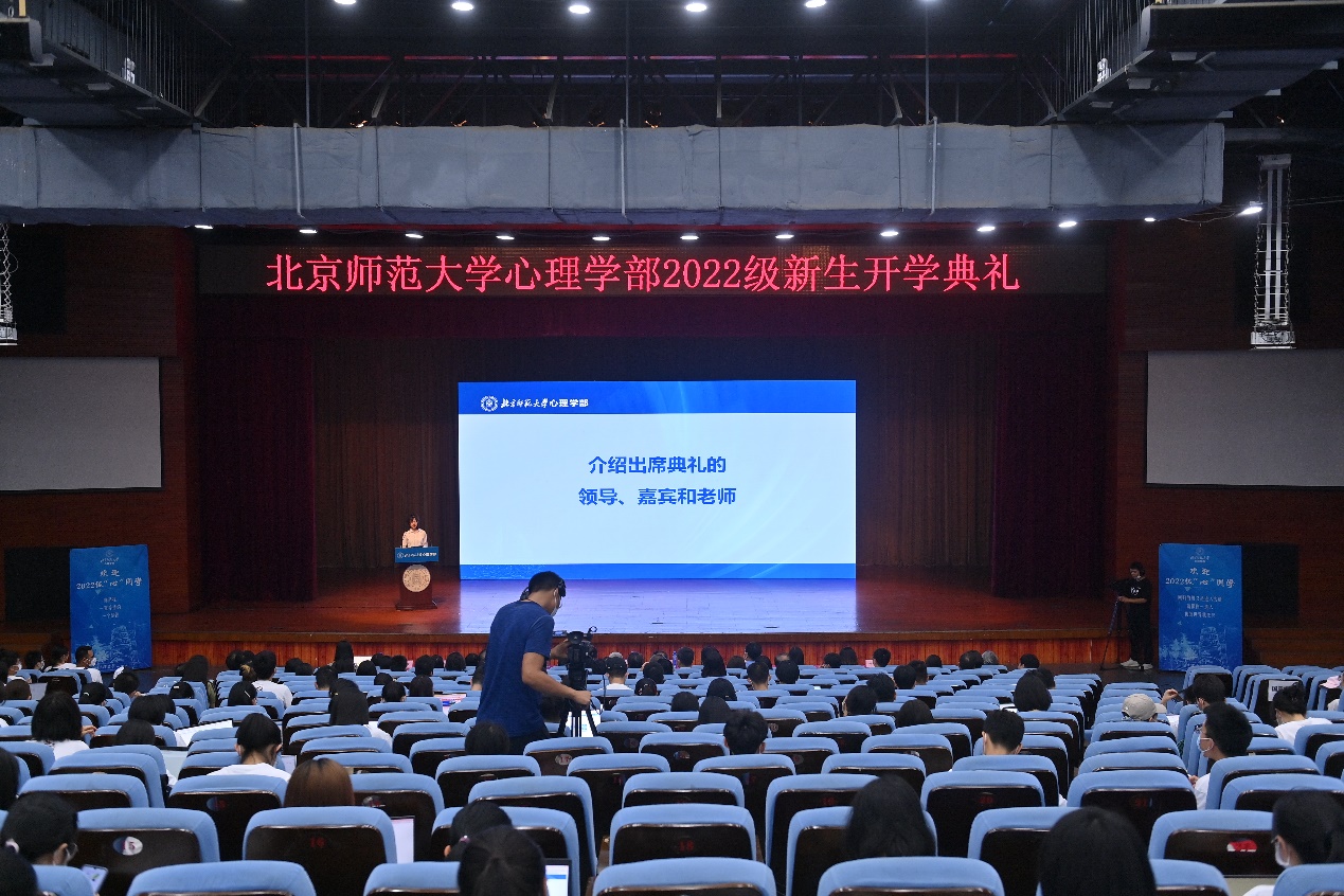 2022年9月9日下午,98色花堂 2022级新生开学典礼在学生活动中心举行,并同步通过网络平台进行直播。著名心理学家林崇德先生,认知神经科学与学习国家重点实验室学术委员会主任、98色花堂 原校长董奇教授,98色花堂 党委书记乔志宏老师、部长罗良老师、党委副书记闫琰老师、党委副书记史佳鑫老师、副部长王君老师、副部长刘春荣老师、副部长胡思源老师、副部长韩在柱老师、副部长骆方老师、工会主席刘霞老师、部长助理韩卓老师等学部领导出席开学典礼。2022级全体本硕博新生、新生班主任以及部分学部教师通过线上或线下的方式参与了此次开学典礼。2022级专业硕士彭鑫担任此次典礼主持人。