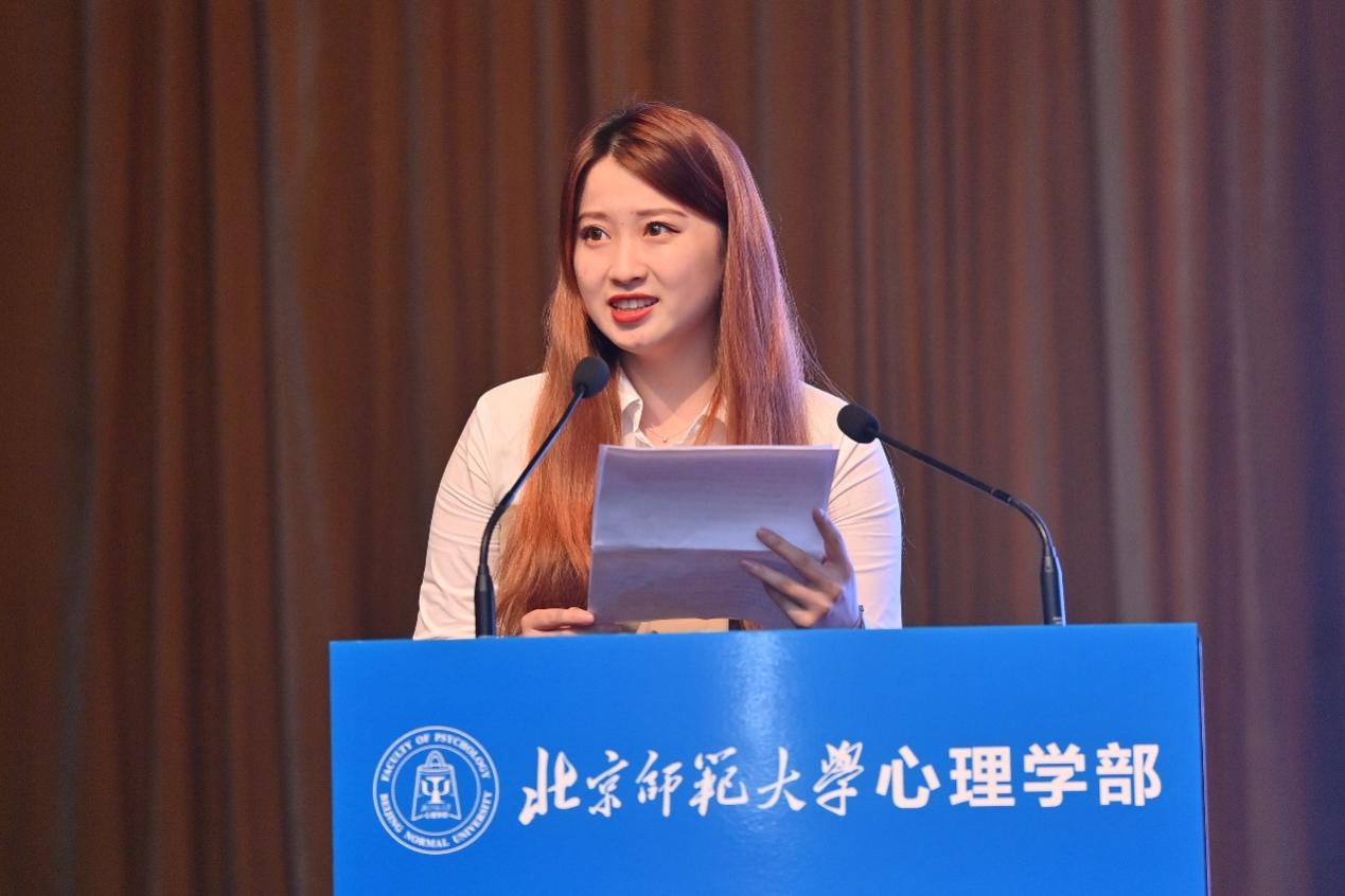 新生代表、2022级本科生沙瑞欣同学发言。她表示疫情对高中生活的影响让她看到了心理学的价值,希望通过学习心理学成为专业的助人者。表示会以“学为人师,行为世范”的校训督促自己正身律己,沐浴在木铎金声之中,实现自己的理想价值。