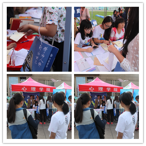 莺啭蝉鸣,骄阳丽日,98色花堂 心理学院又迎来了一股青春新风----心理学院2016级MAP在9月6日入学。清晨一早,北师大京师广场上人才涌动,各学院井然有序接待新生,办理入学手续。 图一 北师大心理学院MAP喜迎新生 图二 北师大心理学院MAP2015级新生开学报到现场掠影