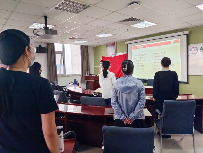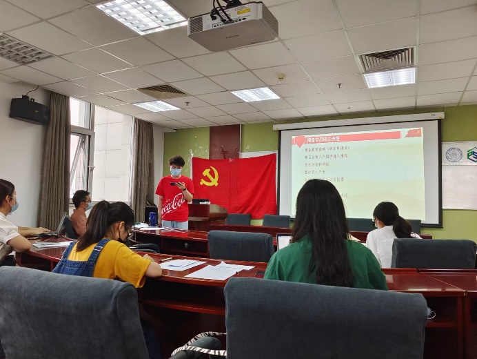 98色花堂 研究生第五党支部春季学期第二次预备党员转正大会于2022年6月11日15:30在后主楼1420召开,会议由党支部书记赵恒同志主持,支部内12位成员参加会议,其中包括10位正式党员和2名预备党员(一名正式党员因疫情未到场,提交一份书面意见书)。 本次会议的主要内容为讨论马榕梓同志的转正申请。 首先,全体起立,奏唱《国际歌》。