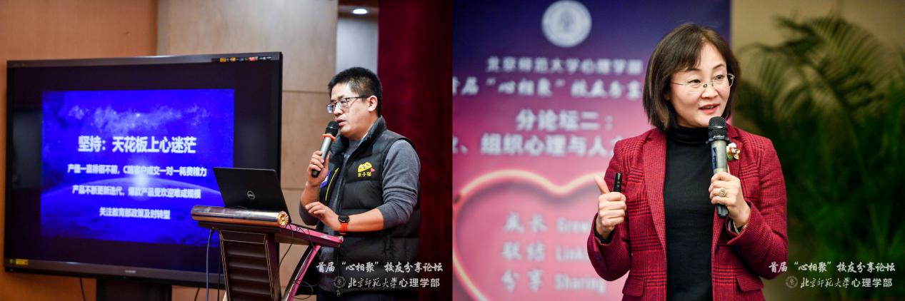 在下午的分论坛中,在“心理健康与精神卫生”召集人田宝伟和乔志宏、“工业、组织心理与人力资源管理”分论坛召集人佘贤君和徐建平、“用户体验与工程心理”分论坛召集人樊雨薇和刘伟、 “投资与创业心理学”分论坛召集人陈晓和许晓勇的带领下,嘉宾们分别就离开母校后自己在工作领域的经验与感悟进行了分享。