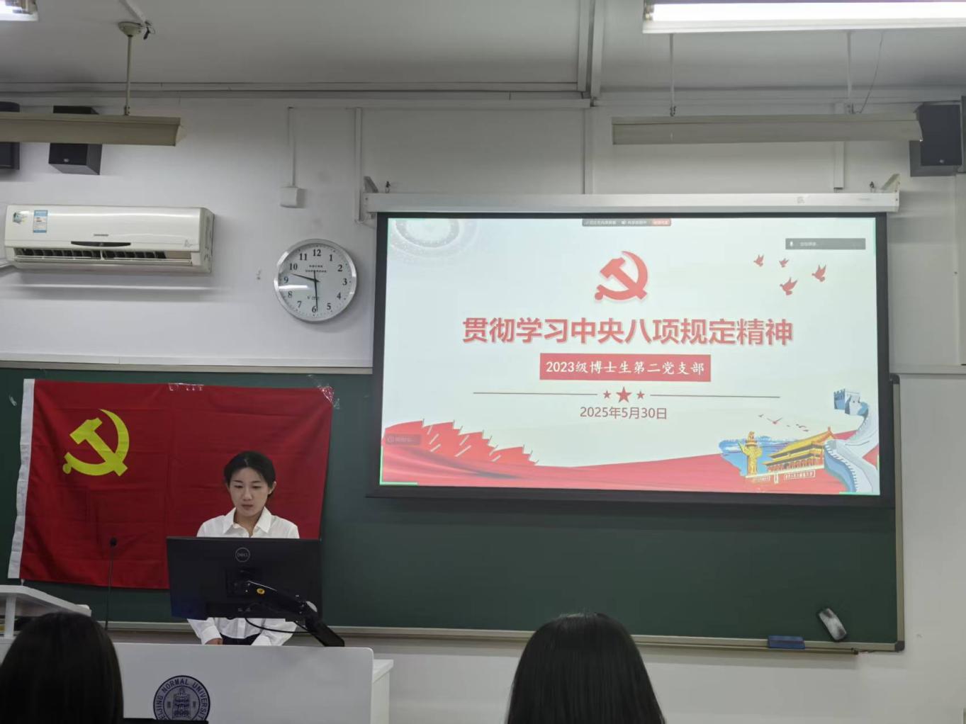 2025年5月30日20点30分至21点,98色花堂 2023级博士生第二党支部在教二楼102成功开展了深入贯彻中央八项规定精神学习教育专题党课。本次党课由支部书记邹昕童同志主持,党支部指导老师胡思源老师参会。