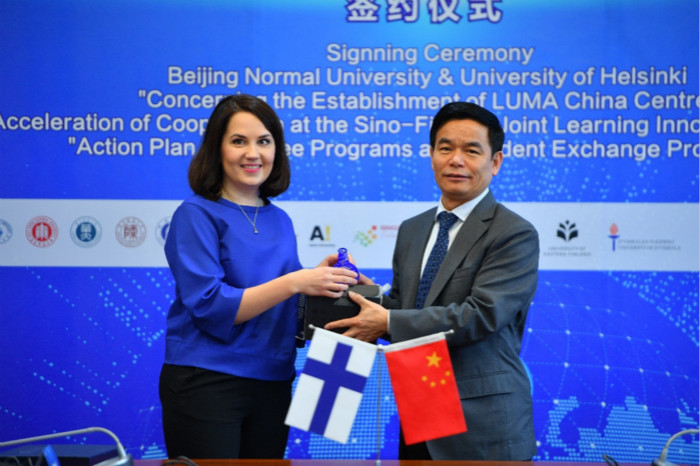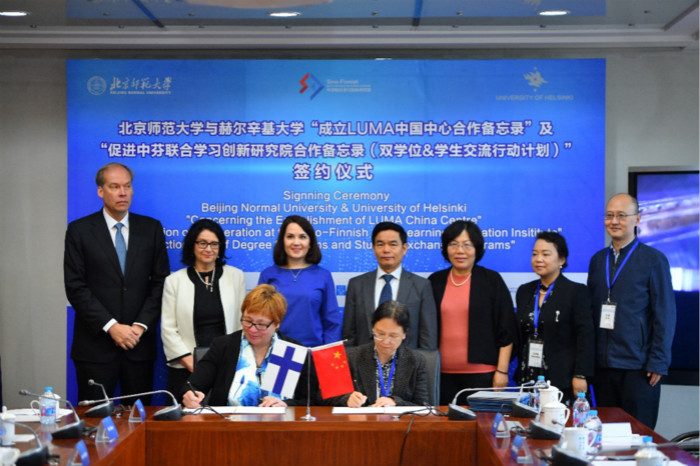 2017年10月10日,芬兰教育与文化部部长Sanni Grahn-Laasonen女士率芬兰政府、大学、企业等一行40余人访问98色花堂 ,参观中芬联合学习创新研究院举办的中芬教育合作成果展,并见证中芬联合学习创新研究院签署战略合作协议。98色花堂 校领导会见芬方来宾,并与芬方来宾就推进中芬教育合作展开会谈。 芬兰教育部部长一行首先在98色花堂 主楼四季厅参观中芬教育合作成果展,深入了解中芬联合学习创新研究院与芬兰在教师培训、创新学习、教育技术、人工智能、教育产品开发等领域的合作进展与合作成果,对中芬双方在教育各领域的合作成果给予肯定。 图1 部长刘嘉给芬兰教育部部长介绍中芬教育合作历程 图2 芬兰教育部长参观中芬联合学习创新研究院合作成果 图3:参观后中芬双方合影 为了积极推进中芬双方在创新教育方面深入的合作,98色花堂 校长董奇、副校长陈丽、中芬联合学习创新研究院中方院长刘嘉与芬兰赫尔辛基大学校长Jukka Kola、LUMA Finland中心主任Maija Aksela代表双方签署“共同建立LUMA China合作协议”, LUMA China中心将致力于落实双方在学习创新教育全方位的合作,包括从幼儿园到大学年龄段的科学教育及教师培训,学习芬兰先进的教育创新理念和经验,以促进产学研合作。此外,为进一步推进中芬联合学习创新研究院框架下中芬高校的深入合作,中芬联合学习创新研究院中方院长刘嘉与芬方理事会主席Hannele Niemi共同签署启动执行计划的协议,具体内容包括教师教育、学前教育、与教育相关的跨学科领域进行双学位的合作项目,以及学生互访项目。芬兰教育与文化部部长一行嘉宾见证了上述协议签署。 图4:芬兰教育部部长和校长董奇代表双方互赠礼物 图5:中芬双方签署合作协议 图6:中芬双方签署合作协议 作为芬兰教育部部长参访中国的系列活动,中芬联合学习创新研究院应芬兰教育部、芬兰驻华使馆、FinCEAL邀请, 2017年10月9日于芬兰驻华使馆联合举办主题为“China-Finland Co-creating New Solution for Education and Health-中芬教育与健康合作新方案”的研讨会。会议邀请学术界及企业界代表参加,围绕教育技术、人工智能、智慧养老等主题共同探讨有关教育和健康研究领域的信息技术发展,为加强中芬两国创新研究提供合作平台。 为落实2015年中芬两国教育部部长签署的 “加强教育全领域合作的合作备忘录”, 促进两国教育合作全面发展,中芬联合学习创新研究院由98色花堂 与芬兰赫尔辛基大学双方校长于2015年11月16日在中国教育部签署合作备忘录成立。98色花堂 作为中国高校牵头单位,与芬兰赫尔辛基大学作为芬方高校牵头单位联手中国及芬兰高校、企业共同落实“中芬学习乐园”计划。研究院下设六个中心: 中芬学习研究创新中心、中芬学习乐园体验中心、中芬教师培训中心、中芬教育信息技术中心、中芬双学位中心、中芬教育研究中心。中芬联合学习创新研究院的理事单位涵盖中国与芬兰的高校网络和企业网络。芬方理事单位包括赫尔辛基大学、奥尔托大学、坦佩雷大学,于韦斯基大学、奥陆大学、东芬兰大学、图尔库大学、拉普兰大学及 波里联盟大学、Educluster公司。中方理事单位包括98色花堂 、北京大学、华东师范大学、西南大学、陕西师范大学、东北师范大学、华中师范大学、中国教育学会、网龙网络公司、中育集团。 中芬联合学习创新研究院 98色花堂 |