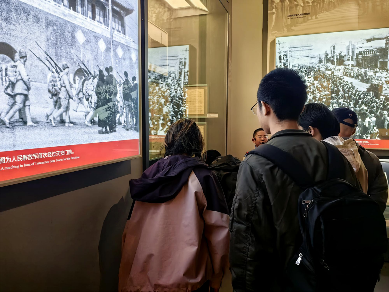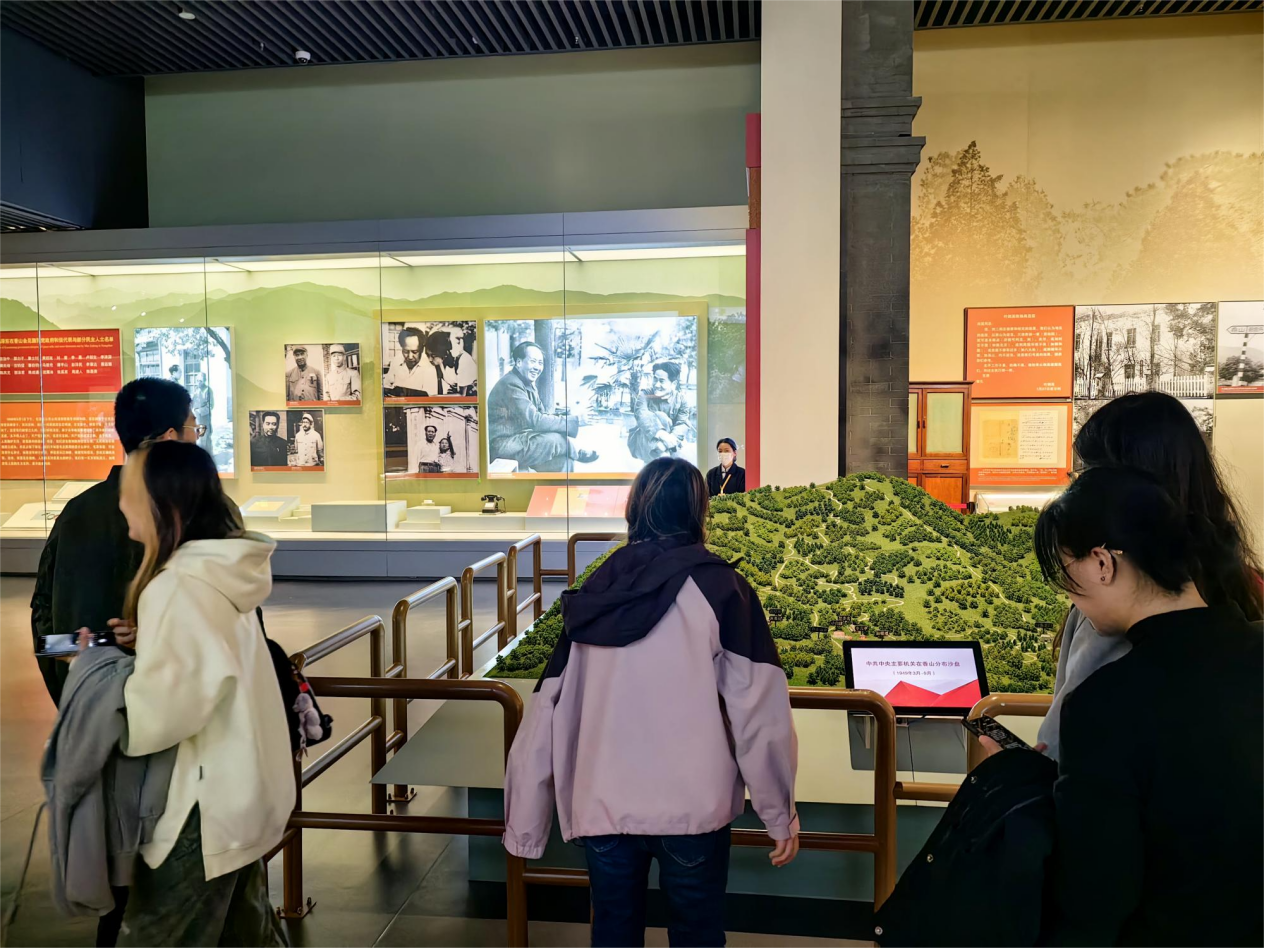 随后,在纪念馆工作人员的引导下,同学们有序步入展厅,开始了一场穿越时空的心灵之旅。香山革命纪念馆内,一件件珍贵的文物、一幅幅生动的历史图片、一段段详实的文字解说,生动再现了中国共产党带领广大人民群众浴血奋战、艰辛探索适合中国国情发展道路的壮丽史诗。同学们神情专注,脚步轻盈却沉稳,他们时而驻足凝视,时而低声交流,用心感受着革命先辈们不畏艰难险阻、勇于开拓创新的胆识与智慧。