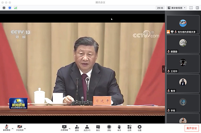 随后,按照会议流程,在程先楷同志的主持下,同志们观看并学习习近平总书记在中国人民大学考察时的讲话。
