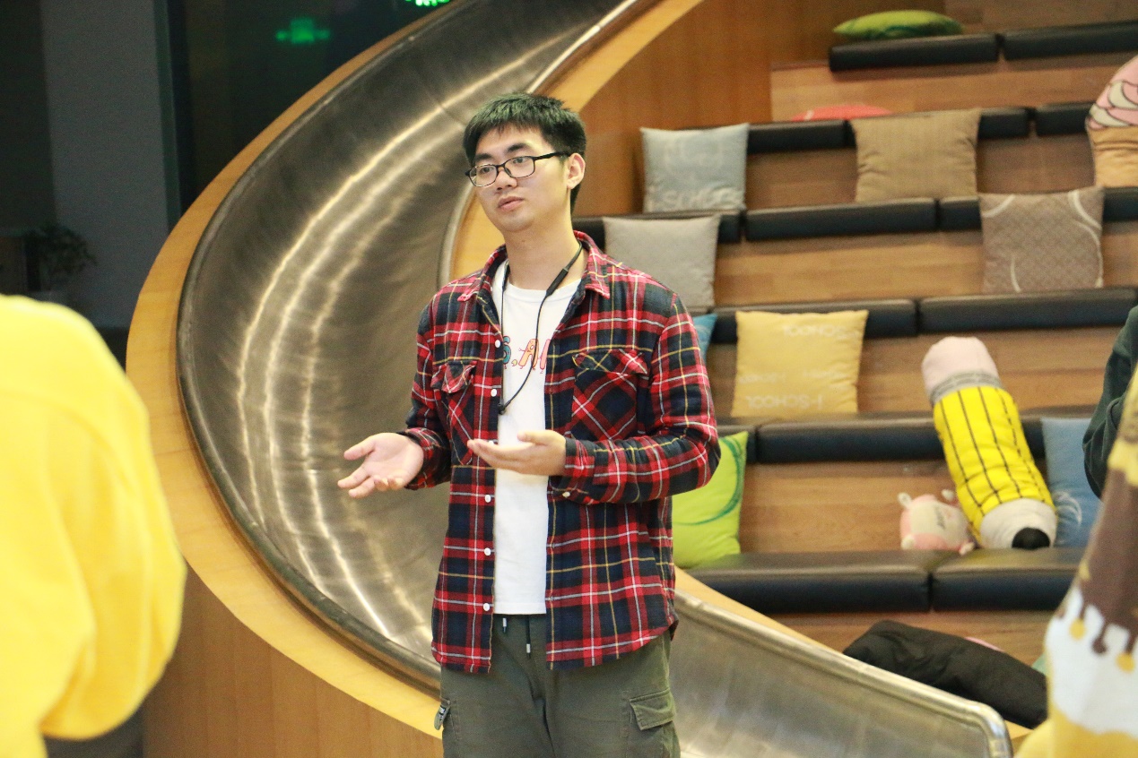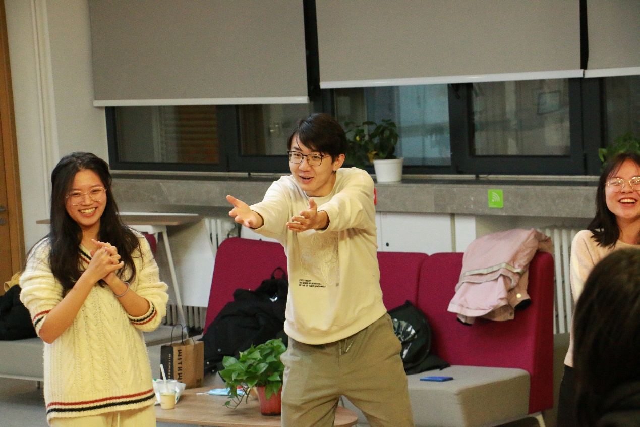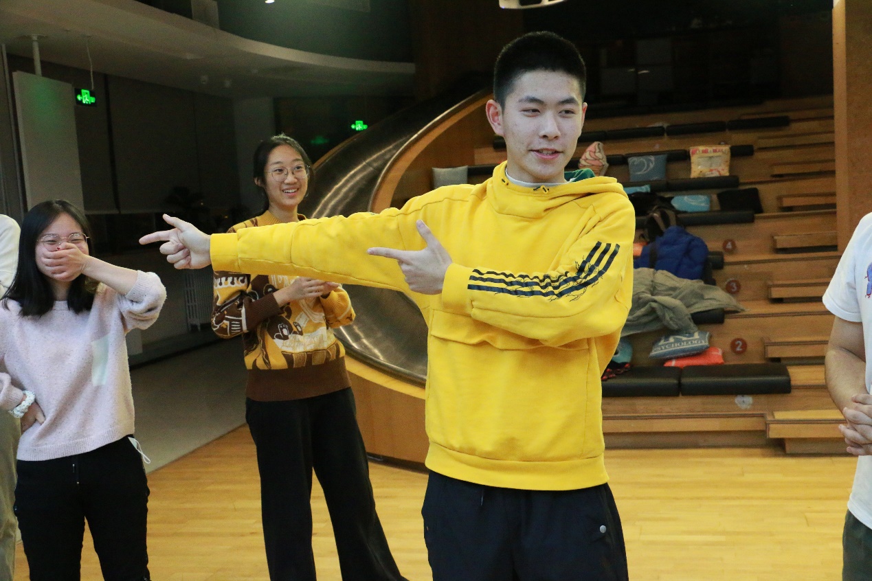 为加强心理建设在班级精神文明建设中的作用,通过集体活动的形式提升学生的心理素质水平,突出班级活动的“心理”特色,98色花堂 2020级本科2班于2021年12月18日晚19:00于金丰和路演厅与98色花堂 即兴戏剧椰丝团举行了“2020级本科2班×椰丝团工作坊”共建活动。 班委在10月份便与椰丝团提前沟通准备,活动恰逢六级英语考试结束和期末压力较大的阶段,椰丝团成员们为2班同学精心设计、准备了适合当前阶段缓解压力的游戏活动。 活动由椰丝团团长瞿弋丁同学主持,首先由热身游戏“疯狂八”让同学们放松身体,进入活动的状态。接着,下一个活动“yip yap yup”进行能量传递,由一个家族逐渐增加难度,没有做出相应动作的“大明星”和同学们击掌,当难度增加到大家有些手忙脚乱时,主持人宣布接下来的环节中不中断游戏,无论ta有没有做出正确的动作,都会被say yes,并由接收能量的同学顺着正确的轨道进行下去。
