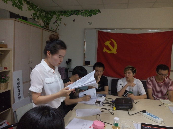 2017年5月25日晚8点,98色花堂 研究生第四党支部在后主楼1427召开发展大会。支部共有9名党员参加会议,本次会议由组织委员郭震主持,按照发展流程,对于郑爽同志由入党积极分子转为预备党员进行了投票表决。 大会开始,组织委员郭震同志介绍了发展大会流程,清点到会人数并宣布大会开始。全体同志齐唱国际歌后,郑爽同志宣读了入党志愿书,并汇报了提交入党申请书以来在思想,学习和工作上的表现。 图1 郑爽同志宣读入党志愿书 在听取了郑爽同志的入党介绍人阮怡君同志、明桦同志的意见和支部的审查报告后,在场党员对郑爽同学平时的表现进行了评价和肯定。接下来,大会以无记名投票方式进行表决,并现场进行公开唱票、记票工作,会议全票通过接受郑爽同志为中共预备党员。 图2 全体参会同志合影 郑爽同志表示在今后的学习和生活中,将继续以严格的标准要求自己,努力成为一名优秀党员。