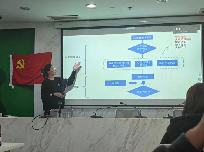 随后,共建班级非党支部内同学退场。党支部组织委员刘一诺同志介绍了入党发展流程,鼓励全体同志按要求积极参加各项活动和培训,早日成为一名合格共产党员。