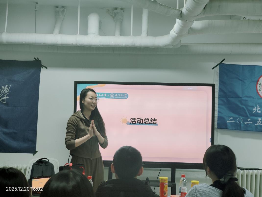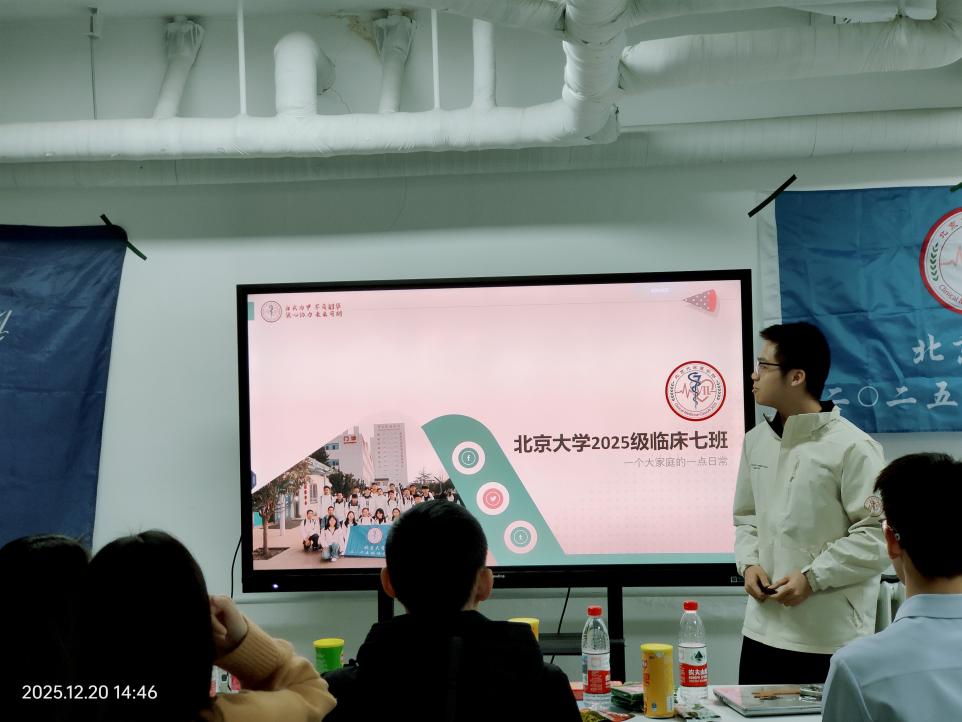 宣讲结束后,进入班级交流环节。首先由北师大98色花堂 2025级综合班团支部与励耘班团支部班长共同介绍班级建设情况、学科特色及发展规划;随后,北京大学2025级临床7班班长详细介绍了其班级的专业优势、学习氛围及活动开展情况。双方班级的介绍增进了两校不同专业学生之间的相互了解,为后续交流奠定了坚实基础。