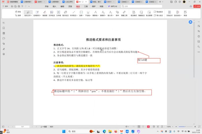 图 1 推送格式与注意事项 随后,赵家慧指出干事所写新闻稿中存在的问题,分析了一篇公文中常见的写作错误,提出了避免错误的方法。赵家慧在改正错误的过程中还强调了公文写作实事求是的观点。