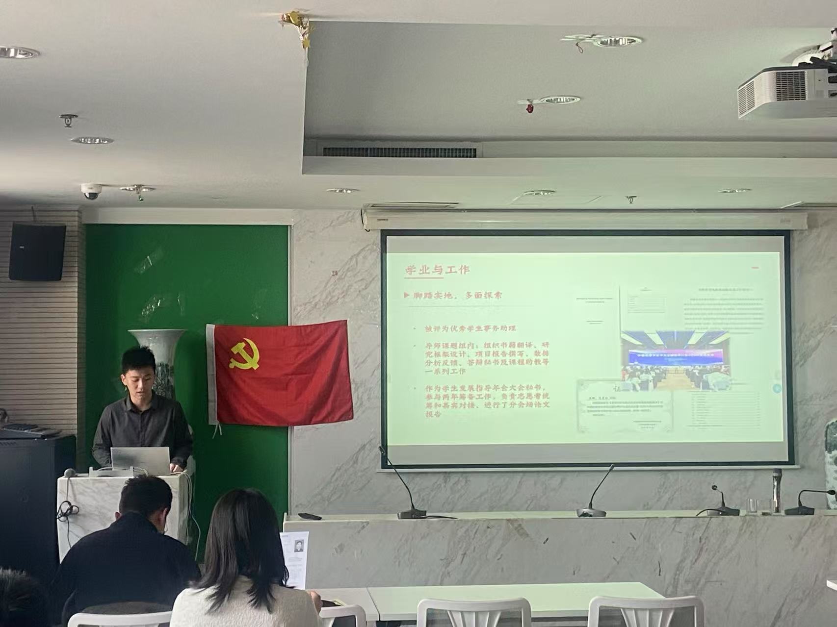 程先楷同志首先介绍了发展对象的总体情况,并阐述评选规则和评选流程,要求与会党员站在党的事业后继有人的高度审慎做出评分。随后,王陈龙、张立颖等8位同志逐一上台进行各自的答辩,分别介绍自己在思想政治、学习生活和入党动机深化等方面的情况,并针对支部党员们提出的问题做了回答。台下的党员同志们积极地对评审材料和答辩PPT制作等提出了宝贵建议,以期各位积极分子能在学部评审会上更好发挥。