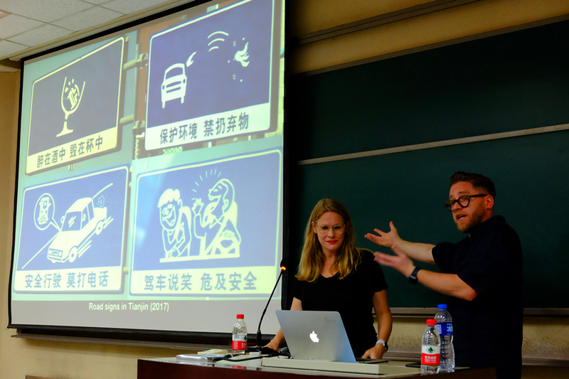 7月30日上午,四校联合工作坊为参与学生准备了两场精彩讲座,为学生充电。分别是代尔夫特大学的Catelijne教授和Ryan老师的Visual Identity(standards) in a Globalizing World主题演讲,以及98色花堂 访问学者、北京联合大学贾京鹏老师的Hidden Needs Research for Deaf Driving UX主题演讲,两场精彩的讲座是同学们受益匪浅。