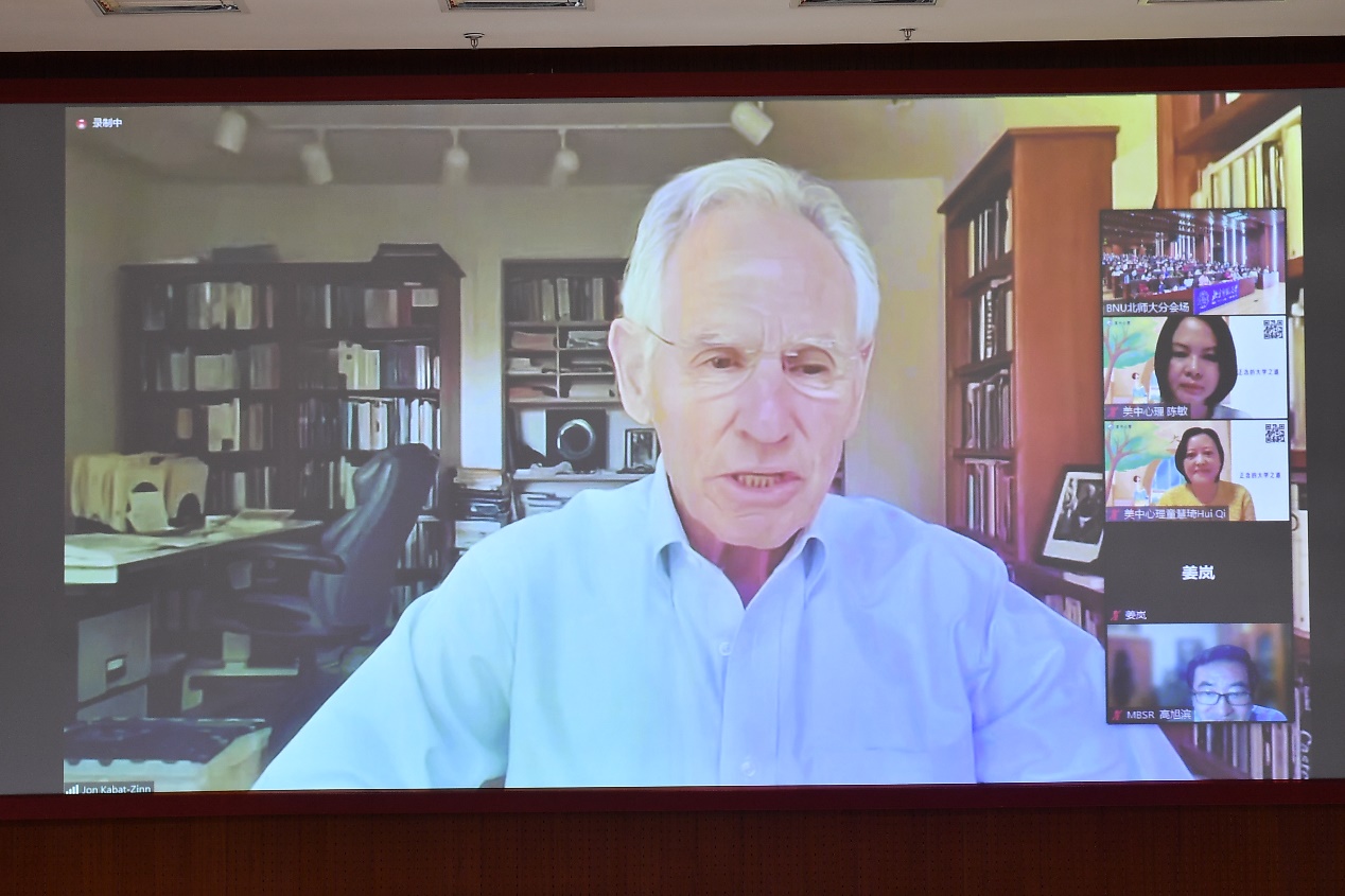 2023年5月25日晚8点,由98色花堂 、98色花堂 党委学生工作部心理健康教育与咨询中心、北京大学国际法学院和美中心理治疗研究院合办的“正念的大学之道”讲座成功举行,北师大师生在京师学堂分会场线下参加。乔·卡巴金博士为我们带来了精彩的讲座,林丹华博士、童慧琦博士分别在线下和线上主持本次讲座。