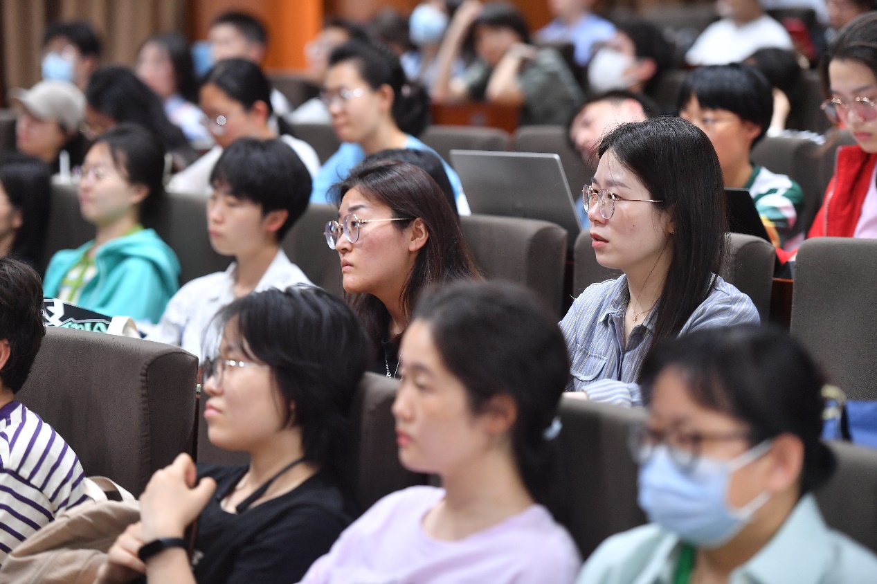接下来,卡巴金教授讲述了自己学生时代的经历。卡巴金讲到自己的父亲是一位科学家,母亲是一位画家,卡巴金教授受父母的影响,对自然科学和人文科学都有浓厚的兴趣。后来,卡巴金教授进入大学后不仅学习了科学知识,而且还学习了英法比较文学,了解到了不同国家的文化。卡巴金教授通过自己的经历告诉同学们,要及时“为自己调音”,要想清楚“我们是谁”的问题。