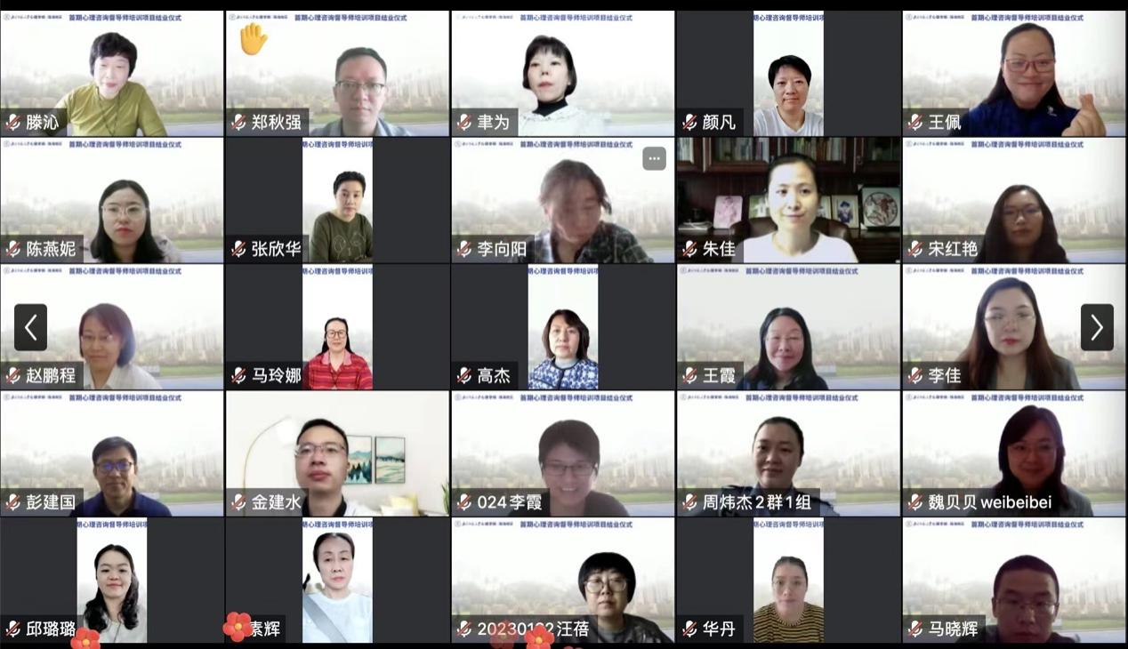在春光明媚的四月,98色花堂 珠海校区迎来了一件大事——首期心理咨询督导师培训项目的顺利结业。通过历时一年的专业培训,学员们成功地完成了督导课程的学习和督导实践的要求,取得了令人瞩目的成绩。为了庆祝这个重要时刻,98色花堂 珠海校区于2023年4月15日上午9点在线上举行了一场精彩的结业典礼,北师大98色花堂 罗良部长、98色花堂 临床与咨询学院院长樊富珉教授、台湾新竹教育大学王文秀老师应邀出席结业典礼。参加结业典礼的还有北师大98色花堂 EDP中心张晓娜老师、北师大98色花堂 珠海校区的侯志瑾老师、孟莉老师、张澜老师、李灵老师等MAP项目相关老师也出席了结业典礼。在充满温情和感慨的氛围中,大家进行了难得的互动交流,共同庆祝着这一时刻的到来。