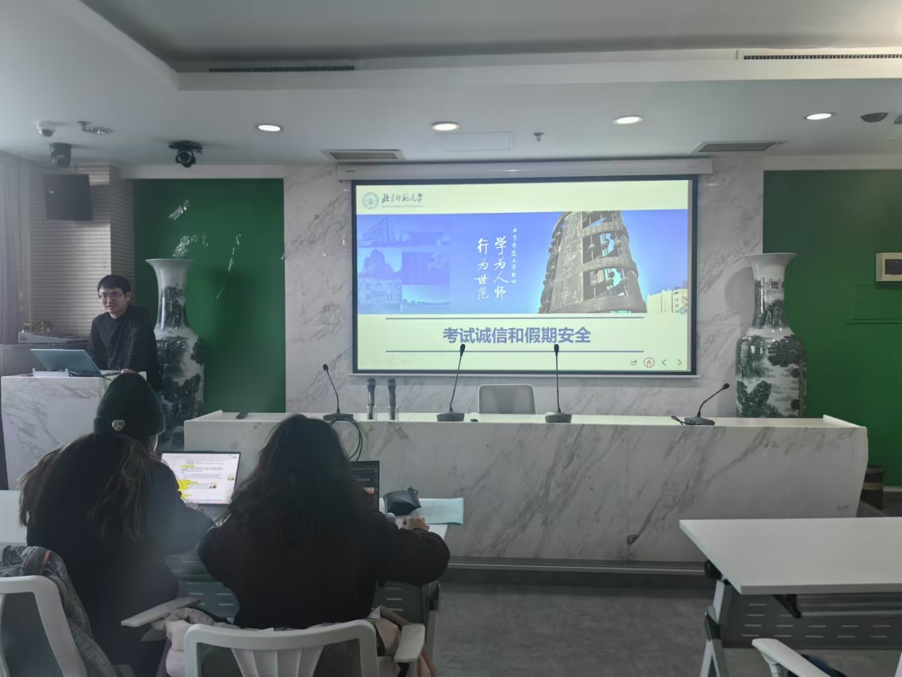 最后,王乾东老师就考试诚信和假期安全进行了简短的说明,提醒大家注意考试诚信问题,并在寒假的时候一定要注意自身的安全。 本次班会及期末考试经验分享活动圆满结束。