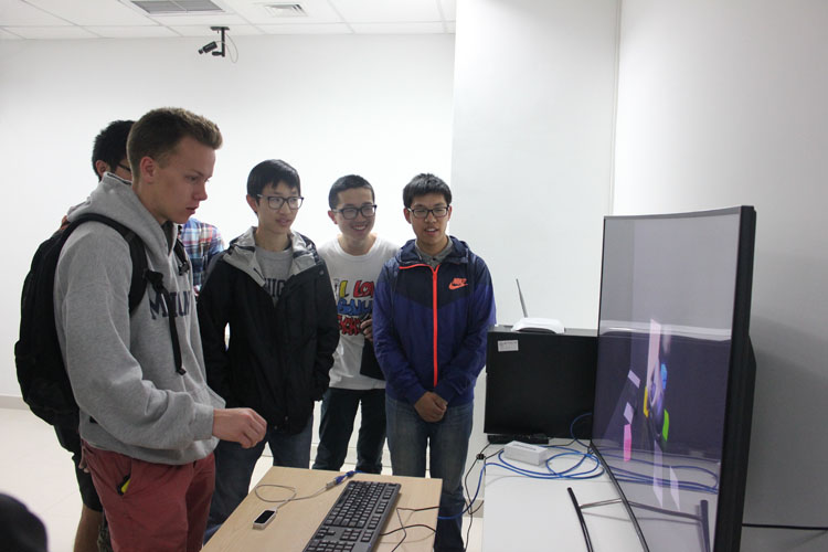 2016年5月14日上午,由2015级八名同学组成的心理学院英文讲解队在后主楼13至15层向密歇根大学的老师和学生们进行了详细而流利的讲解,内容包括心理学院的历史,各实验室,墙壁上展示的人物风采等等。