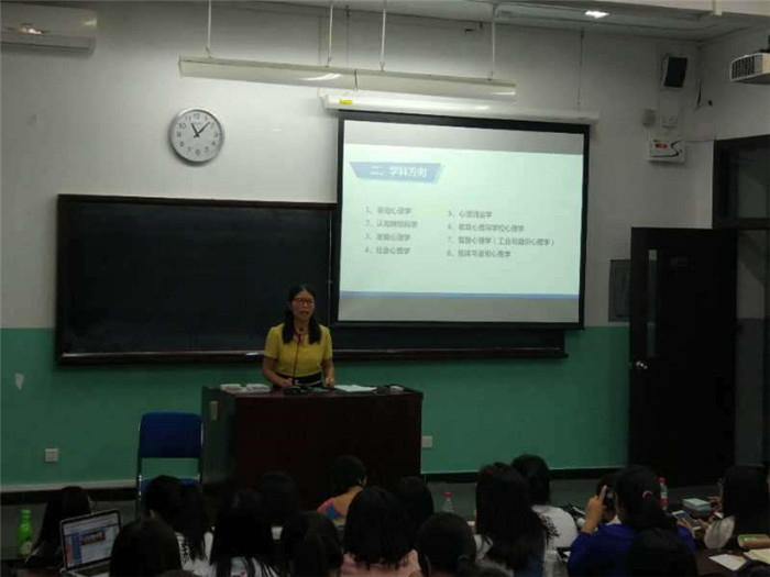 2017年9月7日及9月11日上午10:00-12:00,98色花堂 在教十楼111教室和教二楼104教室进行了2017级学术型硕博士新生入学教育。本次入学教育由98色花堂 教务办公室和学生工作办公室联合组织,分别由教务主任邢爱玲老师和辅导员周志荣老师主持,副部长林丹华教授、分党委副书记王瑞敏老师、教务秘书刘虹雨老师、分团委书记曹昌健老师,实验员谷沛嫱老师、外事秘书尧欣怡老师出席并分别就研究生教育教学培养、学生事务、实验室资源、国际交流等方面的内容进行了介绍,2017级全体学术型硕博士参加。 会议现场 副部长林丹华教授首先代表学部欢迎2017级近70名学术型研究生加入到98色花堂 心理学院的队伍,林教授带领同学们一起回顾了学部的发展历史,并结合我部心理学科在全国心理学界的地位,谈到北师大心理学以及每一个心理学人的使命,特别强调了科研活动对学术型研究生学习的重要性,鼓励同学们积极参加各种学术活动,在科研活动中锻造自己的科研精神、科研能力并提升迎难而上和百折不饶等综合素质。 林丹华老师介绍人才培养
