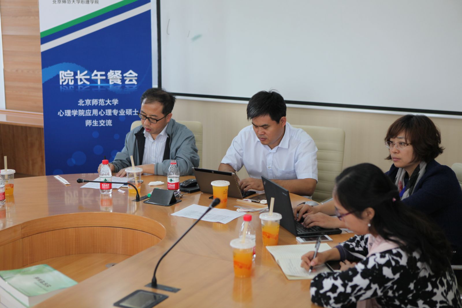 图1 北师大心理学院2015级MAP院长午餐会:副院长张西超教授认真记录并讲解