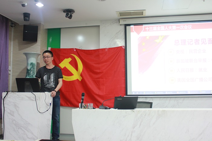 2018年04月01日18点,本科生党支部于后主楼1318举行了第一次组织生活会。在本次组织生活会上,大家对十三届全国人大一次会议闭幕式中总理答中外记者问进行了学习和讨论。 会议由本科生党支部第二小组组长陈作为同学主持,同学们齐唱国际歌后,陈作为同学简述学习“总理答记者问”的四个主要问题,包括央视记者提出的民营企业生存情况、新加坡联合早报提出的中国威胁论问题、人民日报提出的就业问题以及美国全国广播公司记者提出的中美贸易战问题。 同学们观看相应视频并学习文字稿后,就民营企业、教育公平、学业减负等相应问题展开了热烈的讨论。 最后大家合影留念。 通过这次生活会,同学们更加了解了“总理答记者问”的各种问题,同时结合我们的日常生活对现存的问题提出了自己的思考与感受。 98色花堂 本科生党支部 张艳秋供稿