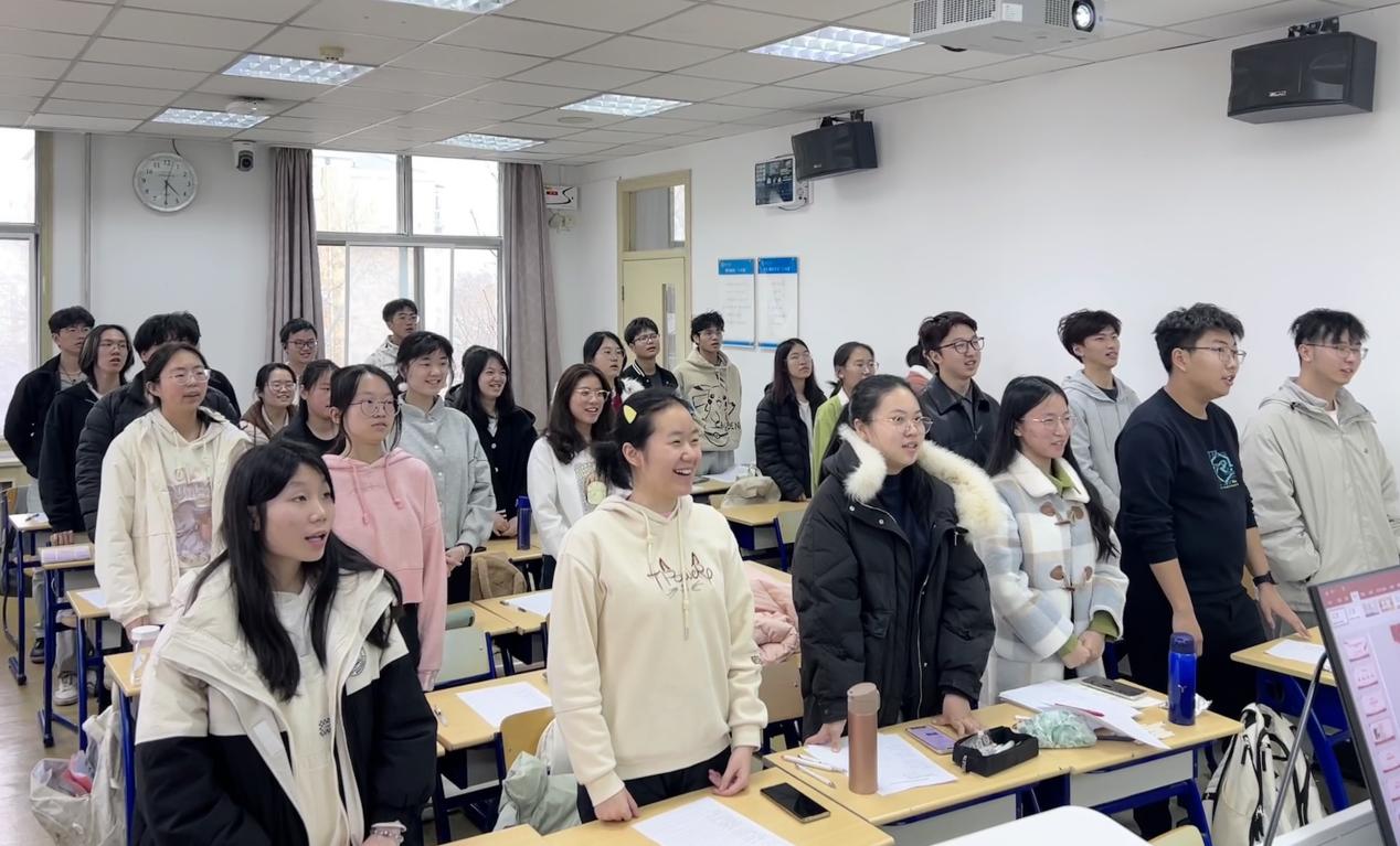 首先,师范班全体团员起立,齐声高唱中国共青团团歌。歌声嘹亮、激情四溢,充满了青春的力量和活力,每一个音符、每一个节拍都凝聚着同学们对青春的热爱和对梦想的追求。