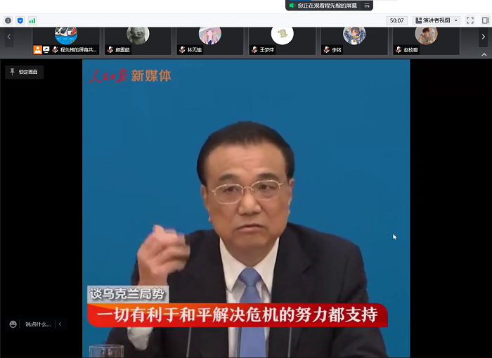 最后,同志们针对总理记者会上的热点话题进行分小组讨论。讨论结束后,各小组均派了一名代表汇报讨论结果。 民生问题小组的邬宇镇同志从就业和教育层面肯定了中国政府的举措:“在疫情和经济波动的大背景下,政府减税退费,激发企业活力,鼓励企业开放更多的岗位,提高了就业率;双减政策在减轻学生和家长的负担的同时,也对人才进行了分流。” 疫情防控小组的王梦萍同志讨论了中国和其他国家疫情防控措施的不同,并从“政府和执政党”以及“人口基数”两个角度分析了产生双方“宽严不同”的政策的原因。这也启发我们思考中国共产党如何在各个层面代表了最广大人们的根本利益。 香港台湾问题小组的王恺芃同志从疫情防控和文化教育层面总结了我们应该如何处理香港、台湾问题,认为应该从文化和政治角度入手,给台湾民众,尤其是儿童和青少年进行爱国主义教育。 最后,国际形势小组的程先楷同志联系习总书记和拜登的会谈中提到的“解铃还须系铃人”,认为乌克兰局势需要大国承担起责任,不能一味地用冷战思维来解决问题。也有同志提到,俄乌战争在是冷战之后国际局势的一个重大变化,大家也可以从中看到美国和北约是靠不住的;还有同志提到,俄乌冲突在几年前就已经存在了,但是为什么会在最近才爆发,背后的原因也值得我们思考;所有同志都表达了希望各个国家都能和平发展的美好愿望。 在本次会议中,大家聚焦了国内外发生的重大事件。我们通过两会和政府工作报告了解民生问题,分析国际局势,同志们都积极地参与讨论,大家都有所收获。本次党小组会圆满结束! 98色花堂 本科生党支部 供图供稿:颜露懿 |