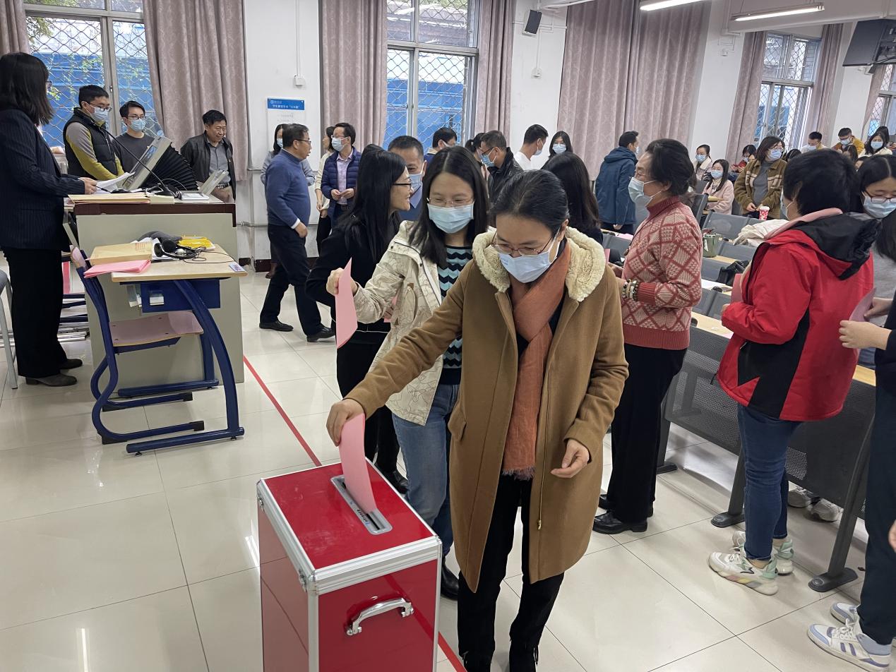 图 3 审议通过代表候选人名单 随后,大会表决通过本次选举总监票人、监票人和计票人名单。总监票人闫琰老师主持大会选举工作,与会正式党员逐一进行了投票。