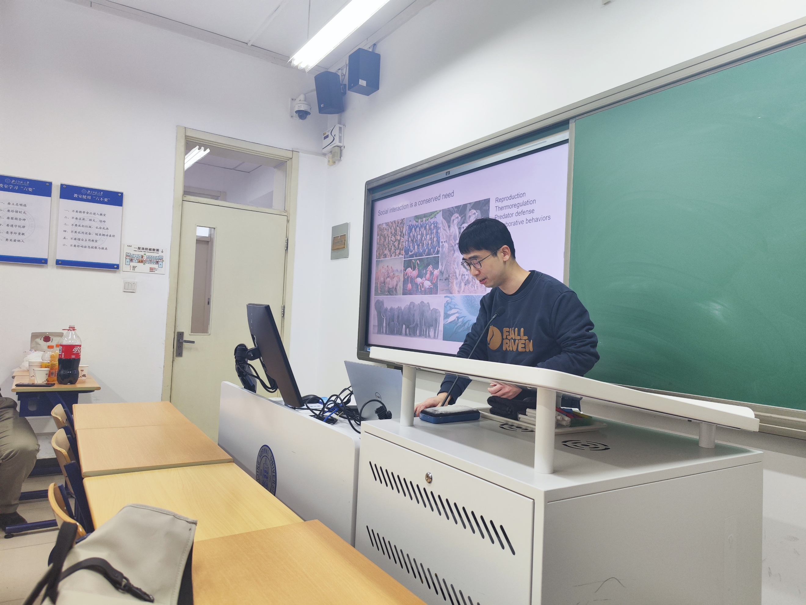 刘老师首先和同学们分享了自己最新研究成果,从社交需求对动物和人类的重要性出发,关注到“剥夺社交需求后的社交反弹”这一有趣现象。刘鼎老师研究以小鼠作为研究对象,通过一系列动物行为学和神经机理研究,发现:社交剥夺时间与社交需求反弹程度成正比,且触觉通道在小鼠社交活动中具有重要地位,进一步利用遗传学手段揭示出响应社交需求的下丘脑神经元群。 在随后自由交流环节,同学们提出了自己感兴趣的问题,包括孤独感背后的神经机制、如何掌握新的研究技术、如何在大学低年级入门科研等。刘老师采用启发式教学法一一给予了解答,并指出兴趣对于科研工作的重要性,同时要坚持对数理知识的学习和对逻辑思维能力的培养。左老师和胡老师也不时参与讨论,分别分享了自身对于科研生涯发展的经验和建议。最后,三位老师们鼓励同学们要善于提升自我学习动机,掌握科研所需的数理知识和实验技能。 经过本次活动,同学们加深了对科研工作的理解,进一步增强了对脑科学的兴趣。综合励耘方向团队未来将持续进行“月光脑盒”活动,为高素质本科生培养搭建高水平学术交流平台,营造良好的科研育人氛围,助力本科生尽早融入科学研究、明确学术发展方向。