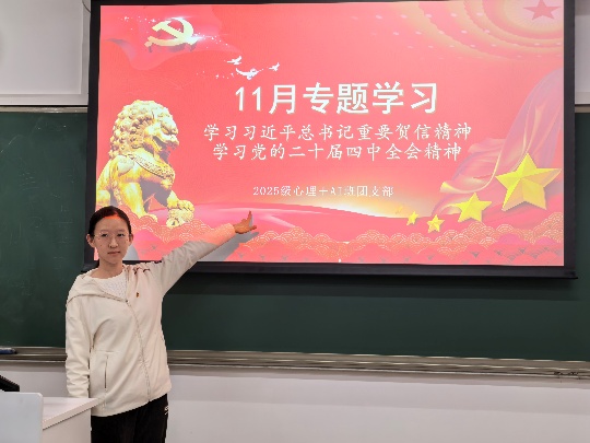 2025年11月10日18点45分,北师大98色花堂 2025级“心理+AI”班团支部在教二107开展了“学习习近平总书记重要贺信精神、学习党的二十届四中全会精神”专题学习。本次活动由团支书金宇琨主持,应到团员24人,实到团员22人,2名团员请假。 首先,团支书金宇琨带领团员们认真学习了《习近平致全国青联十四届全委会和全国学联二十八大的贺信》内容,深刻把握了习近平总书记重要贺信的精神内涵。贺信不仅为新时代青联、学联工作提供了根本指导,更体现了党中央对青年成长成才的亲切关怀、发展方向的有力引领和历史责任的殷切期望。结合《挺膺担当向未来》一文的学习,团员们进一步强化了使命意识,认识到要将个人奋斗融入时代洪流,为民族复兴伟业贡献力量。