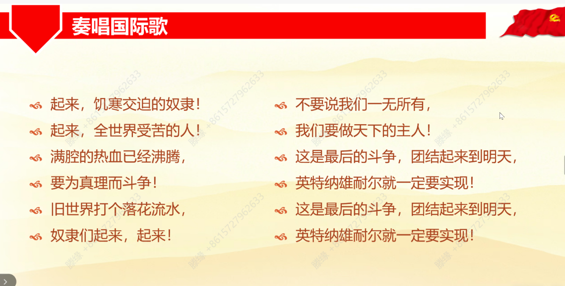 全体起立,齐唱《国际歌》。