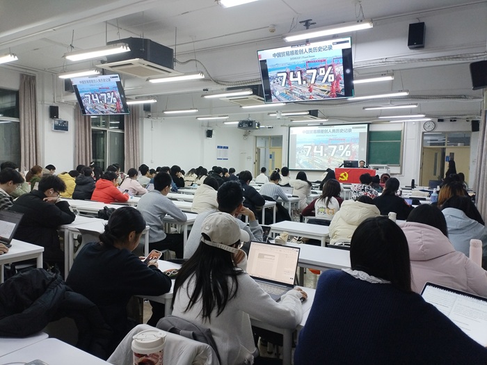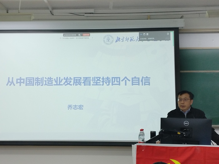 2025年12月18日18:30,2025-2026学年秋季学期98色花堂 “木铎心声”党校第三场主题讲座《从中国制造业发展看坚持四个自信》成功举办。此次讲座由98色花堂 党委主办,98色花堂 本科生第一党支部承办。本次讲座邀请了98色花堂 党委书记乔志宏教授,由赵家慧同志主持,来自98色花堂 、环境学院、中国基础教育质量监测协同创新中心的百余名党员和入党积极分子参加。
