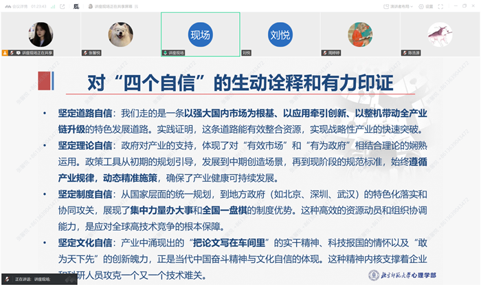 整场讲座内容丰富,逻辑清晰,不仅梳理了中国制造的发展脉络,更明晰了四个自信的实践根基,极大地激发了奋斗热情。未来,与会师生将把这份理解与热情转化为实际行动,积极投身实践,为推进中国式现代化建设贡献自身力量。 心理学本科生第一党支部 供稿人:张馨悦 供图人:张馨悦 审核人:齐乐融融 |