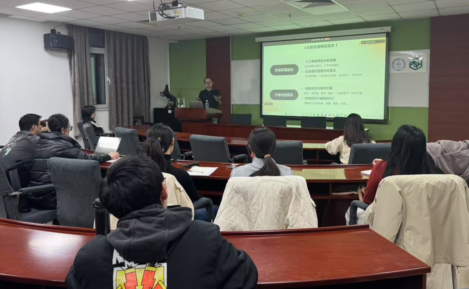 在这次讲座中,林楠校友分享了他在生涯规划行业的职业发展路径和经验,介绍了生涯规划的概念及其覆盖的心理问题类型,强调了生涯规划在不同人生阶段的重要性。结合自身工作经历,他讲解了生涯规划行业的工作内容,包括研发、咨询和培训,并分析了行业面临的机遇与挑战,特别是在人工智能和职业形态变化的背景下如何应对不确定性。最后,总结了生涯规划行业的职业发展方向,如生涯咨询师、讲师等,并提供了求职建议和注意事项。讲座内容实用,获得了同学们的好评。整场讲座持续1个半小时左右,整个分享过程中同学们提出了很多有价值的问题,和校友导师进行了充分的交流。