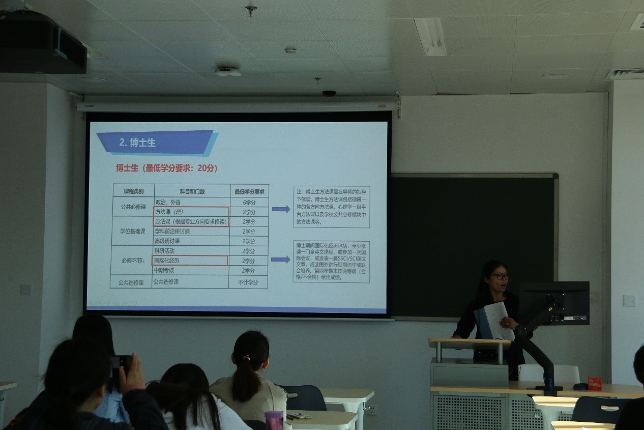 10月9日,98色花堂 2018级博士新生入学教育在新区1号教学楼401举办。98色花堂 党委副书记、18级博士2班班主任王瑞敏、教务主任邢爱玲、教务秘书刘虹雨、外事秘书崔艳丽以及学部相关教师出席了讲座。本次入学教育由王瑞敏老师主持。 教务主任邢爱玲介绍北师大心理学发展的辉煌历程 教务主任邢爱玲回顾了心理学专业以及北师大心理学发展的辉煌历程。如同心理学专业的发展一样,北师大的心理学从学科设立到如今细化为各个方向,发展速度非常迅速。随后介绍了学部对博士的培养模式,并对在场的新生表达了对未来的期待,勉励各位新生不畏艰难,努力钻研,共同促进学科与学部的发展。 教务秘书刘虹雨解读博士培养方案 教务秘书刘虹雨详细解读了博士的培养方案,从培养目标、学习要求,到课程设置、论文要求等。并为新生介绍了学校和98色花堂 对学生的科研奖励机制。鼓励大家积极学习,努力进取。 外事秘书崔艳丽介绍国际交流工作 王瑞敏老师介绍研究生学生工作事务 外事秘书崔艳丽向同学们介绍了近些年学部硕士和博士国际交流的情况,并向学生介绍了国际交流的流程和要求。鼓励博士研究生积极进行国际交流并提前做好交流准备。随后,王瑞敏老师又向同学们介绍了研究生学生工作事务等内容,并一一解答了同学们的疑问。 召开新生班会 入学教育结束后,王瑞敏老师又带领学生们召开了第一次新生班会,与新生们交流在新区的生活、学习等问题,并积极探讨解决方案。同学们纷纷表示对博士生活有了更多的向往,并将团结奋进,在学校和学部的带领下努力学习,提升自我。 |