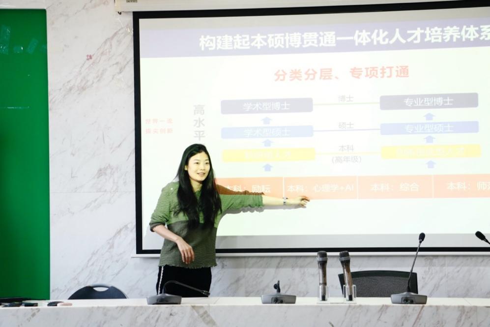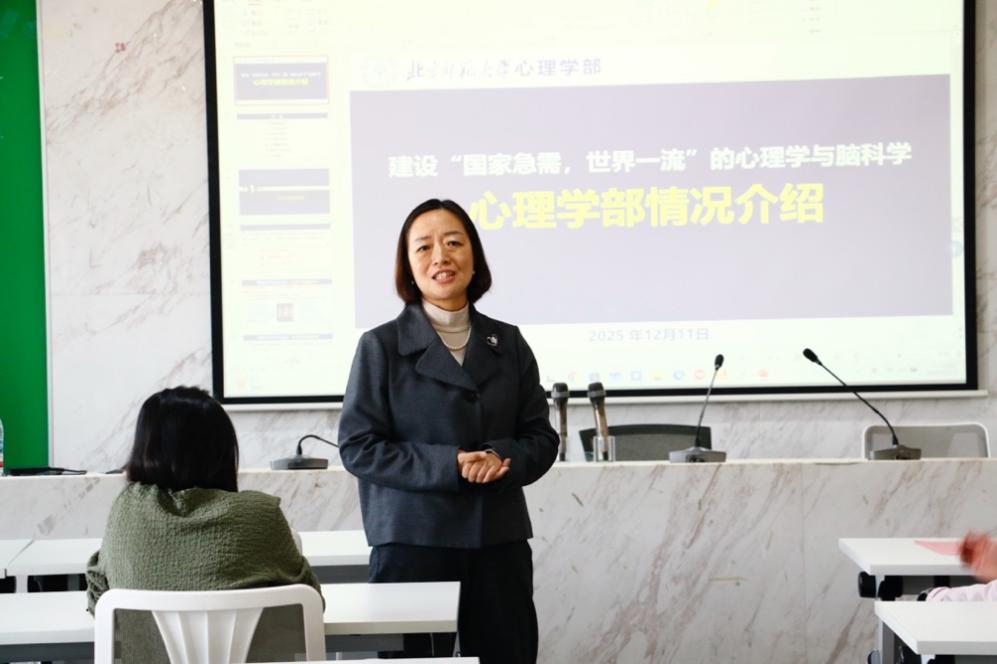骆方副部长讲话 随后,周丽琴老师围绕98色花堂 的人才培养方案进行了系统解读,详细介绍了学部在本科与研究生阶段的培养目标、课程设置及发展特色,并结合心理学学科发展趋势,分享了北师大在拔尖创新人才培养方面的实践经验。同时,周老师也向天津师范大学的同学们发出诚挚邀请,欢迎优秀学子未来报考98色花堂 硕士及博士研究生,继续深造与发展。