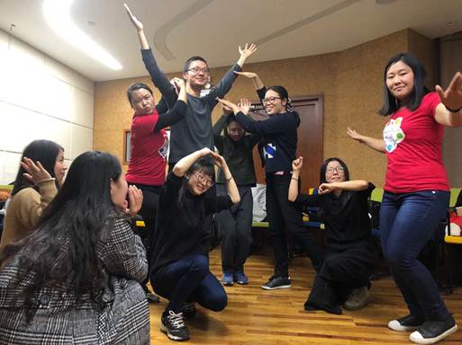 2017年11月21日晚上,98色花堂 生活指导室在京师大厦二层心理健康服务中心多功能厅推出了一场别开生面的演出暨体验沙龙活动,活动面向学部全体本硕博学生开放,限于场地以及活动形式,控制参与人数在25人左右。分党委副书记王瑞敏老师和生活指导室负责人黄利老师邀请了专注于将即兴派艺术表达引入教育领域的诗曼老师,联合她的即兴派团队创造性地使用即兴戏剧表演支持个体成长,让到场的每个人在轻松释放、角色参与中觉察和感悟,场面互动热烈、高潮迭起、爆笑不断。 本次活动有三个环节:50分钟的演出观看;70分钟的现场体验包括热身暖场、戏剧游戏和即兴短剧的学习与展示;最后30分钟的分享交流,每个环节紧凑饱满。 最后是一场“穿越时空”的即兴表演的展示,以夸大的动作、动作凝固后的转换时空为衔接,让观众随着演员在不同的时空里切换,看似脑洞大开却又合情合理,同样引得场下欢乐不断。 看完了四场精彩的演出后,观众们已经跃跃欲试,迫不及待地要进入第二个现场体验活动的环节。 场面活跃起来后,诗曼老师让大家随意走动,随机喊出一个数字,则这个数字的人数抱成团进行角色扮演:6个人一起演一个大的电冰箱;7、8个人一起演一片原始森林的场景;10余人一起展现出一个庞大的消化系统或生殖系统。每个人都尽心尽力地扮演好自己的角色,似乎那个角色就是为自己量身定做的。 体验部分的重头戏则是即兴表演的练习和现场演出。大家穿梭在不同的时空中,表现着不同角色的自己,足球运动员、皮卡丘、狗狗、钢管舞女郎、武则天……穿越古今中外,穿越真实虚拟,打破传统的规则、伦理的束缚,解锁一个个平时不曾想过的新角色,而那些现实中不敢想象的掐架、出轨甚至下跪求饶,在表演中竟是如此自然和谐,又是这么的理所当然。即兴表演的时空穿梭不仅在于团队成员间的配合,更在于接受对方对当下场景的设定,而任何动作的凝固都是你设定场景的灵感,放下评价,认真感受他们的动作,倾听动作的声音,你将不知不觉来到一个全新的、不一样的时空,探索着未知的自己。 最后环节是活动的提问总结,每个人都收获颇丰,分享了自己的感受。诚然,生活中的我们都有着不同的角色,或是老师,或是学生,我们都习惯了戴着适合角色的面具“出演”,而忽略了内心深处自我的真实情感流露。在即兴世界里,每一个人都是“演员”,都可以是各种角色,体验这个角色的喜怒哀乐悲,体验着处处都是戏的生活,跳出角色的框框,还原开放性的自我,这对在场的大家来说,何尝不是一种对自身的探索和超越?