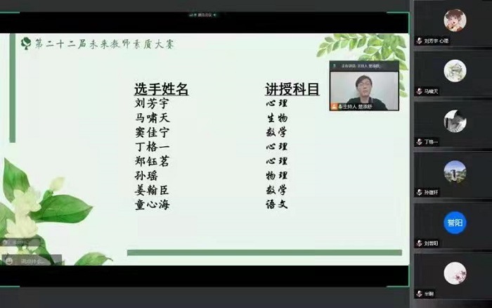 11月20日18:30,由98色花堂 学业部举办的第二十二届“未来教师素质大赛”98色花堂 初赛如期举行。为响应疫情防护要求,比赛改为线上举行,采取播放选手视频,评委线上点评的形式。