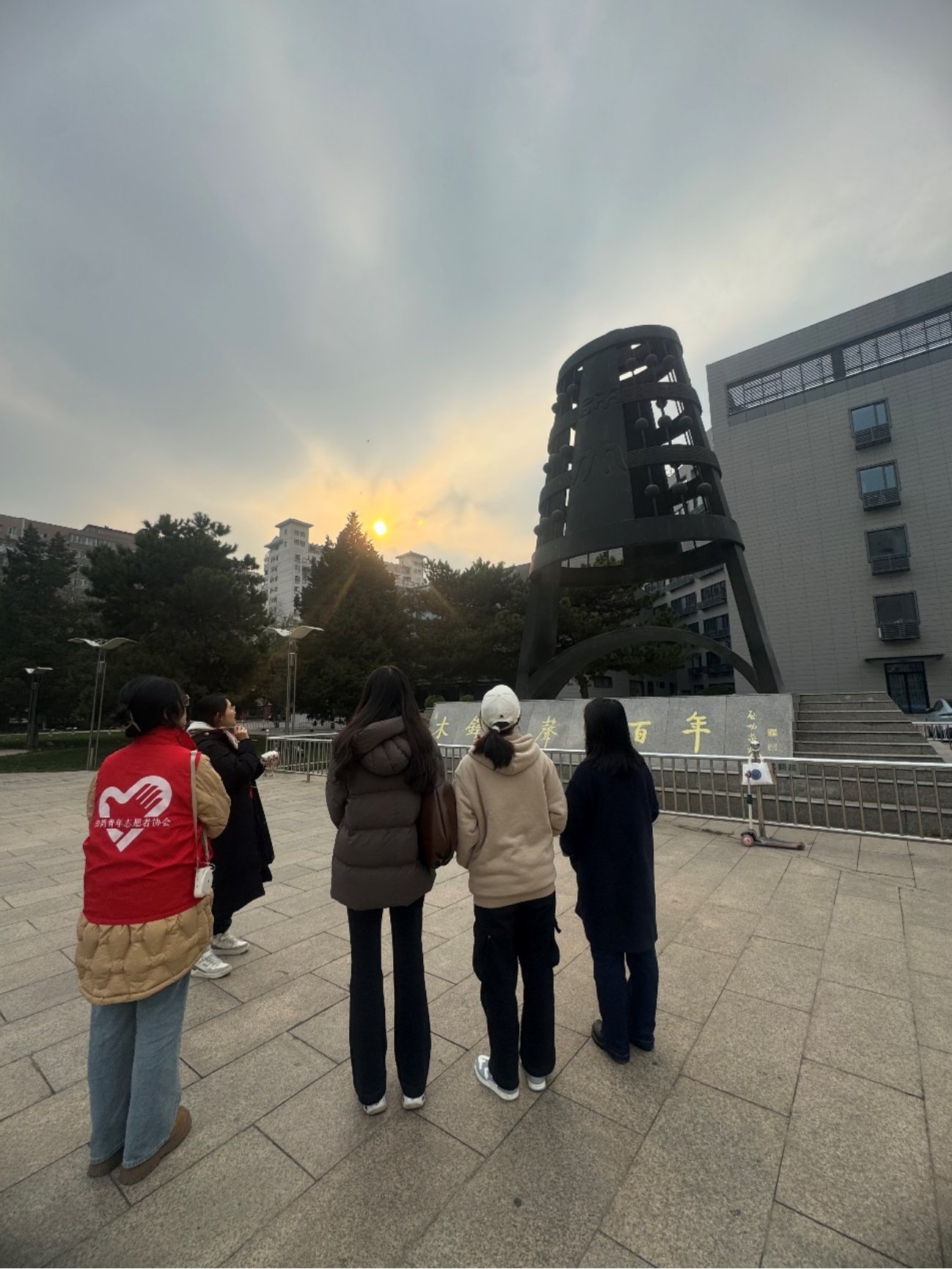 首先,参与活动的同志们在京师广场木铎下集合,由白鸽志愿者讲师介绍“木铎金声”的历史沿革。“木铎金声”寓意着北师大在教育领域的使命和责任、卓越成就和广泛影响以及百年来的精神传承。它不仅是北师大师生对教育事业热爱和执着追求的体现,也是学校发展历程中不可或缺的重要组成部分。