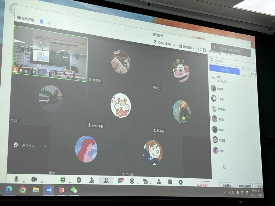 线上同学也积极参与接龙比赛 在比赛的最后阶段,进入8名最终轮的同学战况十分焦灼,班长逯佩远在此阶段启用了“严格版”规则,要求接龙字必须为同一个发音的同字,在限时30秒内完成接龙,任学前同学在现场进行辅助判定。刘硕果作为“现役”高中物理老师,依靠扎实的文化积累和前期积攒的保护机会,勇夺本赛道最终冠军。