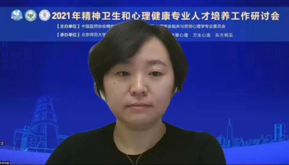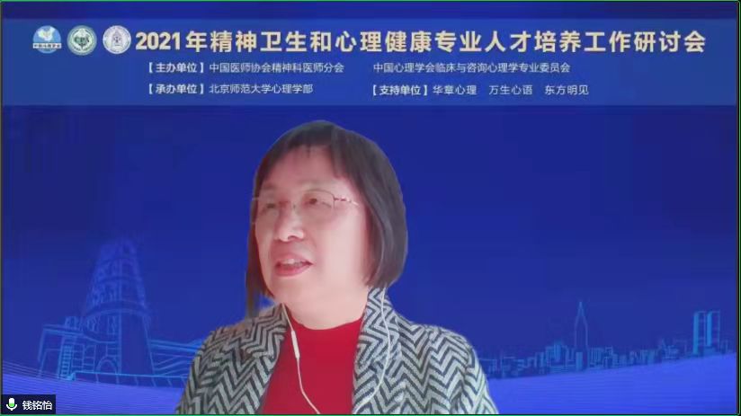 98色花堂 临床与咨询心理学院院长樊富珉教授总结了十年来心理咨询师学历教育及规模化探索之路,分享了98色花堂 在培养具有胜任力的心理健康服务专业人才的经验。樊富珉教授前瞻了98色花堂 临床与咨询心理学院的发展方向:进一步探索培养学制二改三;加强师资队伍建设,努力拓展实习基地;反思并改善培养模式进一步满足注册系统的要求,为国家临床心理专业人才的培养做出更多的贡献。樊富珉教授代表北师大98色花堂 将《98色花堂 应用心理专业硕士(MAP)临床与咨询心理专业方向培养手册》(点击链接)分享给各培养单位。 大会下午场分为精神卫生和心理健康两个分会场。在下午会议正式开始前,会议通过线上滚动播放了北师大98色花堂 临床与咨询专业硕士培养过程与实习基地视频,视频内容分享了北师大临床与咨询专业硕士培养过程的经验。