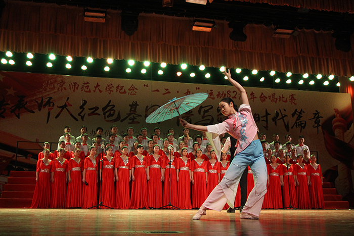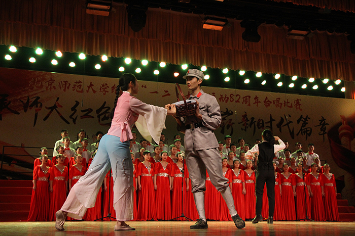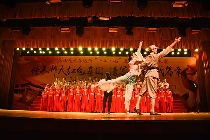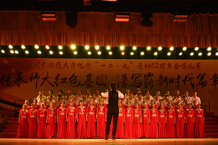 2017年12月9日晚19:00,2017年98色花堂 “传承师大红色基因,谱写时代崭新篇章”纪念“一二·九”运动82周年主题合唱比赛在学生活动中心隆重举行,98色花堂 合唱队作为第3支队伍登场,演唱经典曲目《十送红军》。