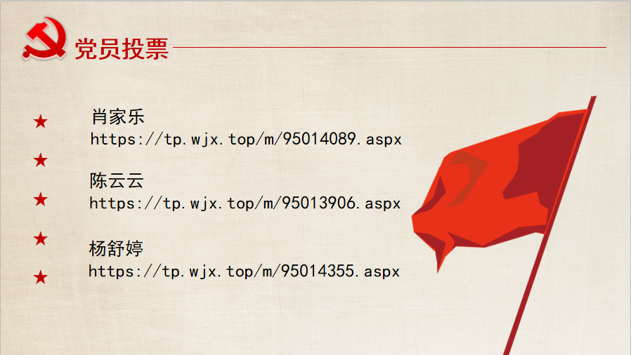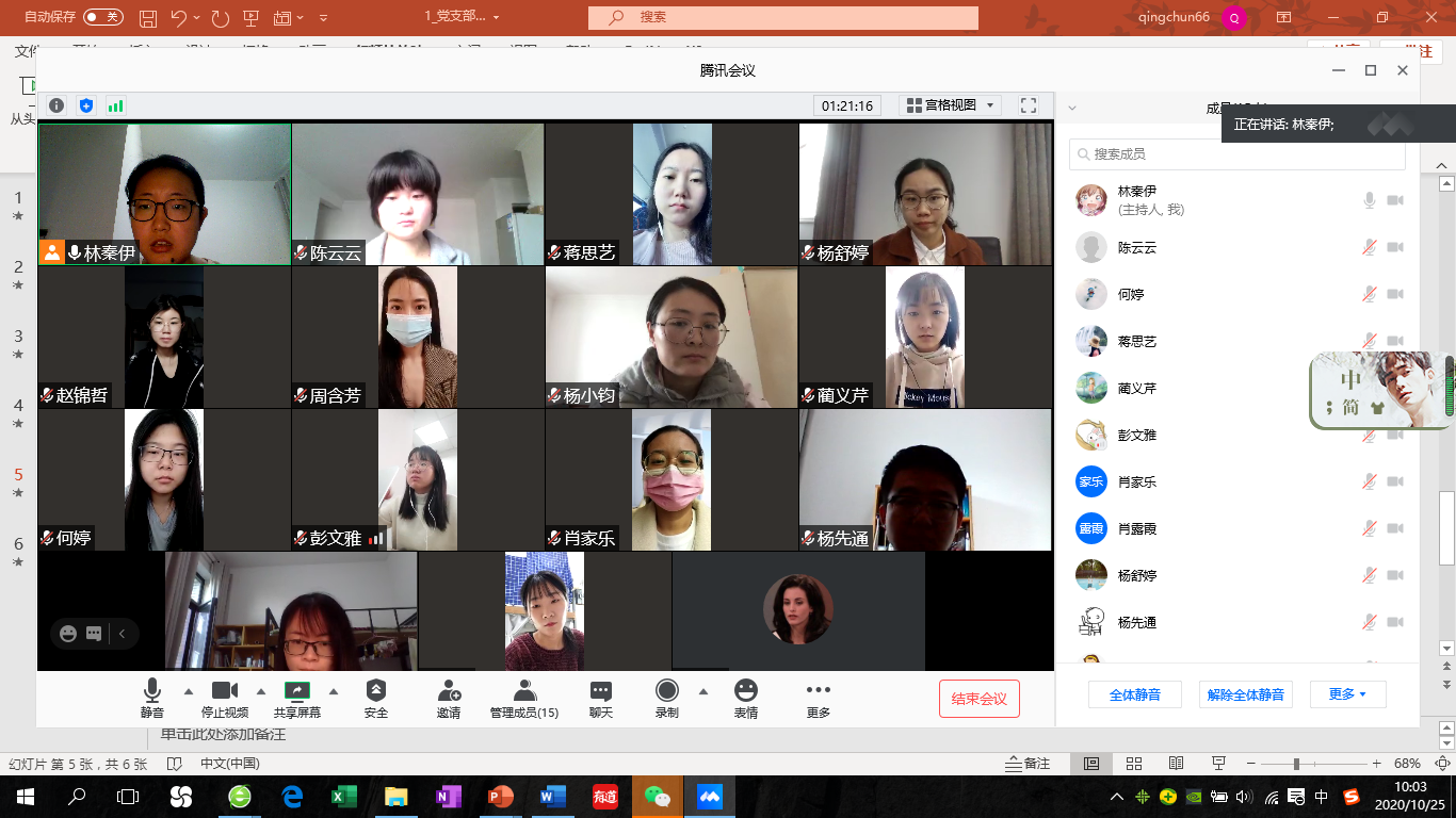 2020年10月25日早上9:00点至10:00点,98色花堂 研究生第九党支部开展确定入党积极分子会。 首先,通过团推优会推荐上来优秀团员3名陈述自己的入党动机,如杨舒婷同学说到,自己出生在“红色故都”——江西瑞金,从小就受到红色文化的熏陶,对中国共产党心生敬仰和向往;陈云云说到,1966年河北邢台发生了6.8级的大地震,自己一位亲人的生命是由人民解放军从死神手中抢回来的,而今年的疫情和洪灾,千千万的党员奔赴一线,在各个地方放光发热,这更加坚定了自己想要成为一名共产党员、为人民群众服务的信念;肖家乐同学说,在接下来的日子,她会更加努力专注科学研究,让自己的研究成果能转化为更多为人民造福的应用类产品。 其次,党员对不清楚的地方进行提问。 接着,参会会议的12名正式党员分别点击三个同学的投票链接后,党支部书记根据投票结果宣布确定肖家乐、陈云云、杨舒婷等3名同学为入党积极分子。 最后,支部成员进行了合影留念!
