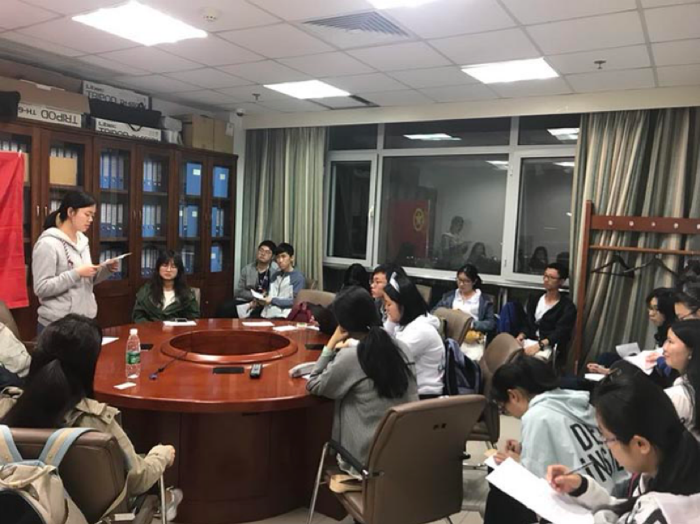 2018年4月21日晚,17级本科第一团支部在后主楼1421会议室召开了入党推优大会。本次申请入党的有四位同学,她们分别是杨格晴、李伊凡、赵一帆和高文进同学。
