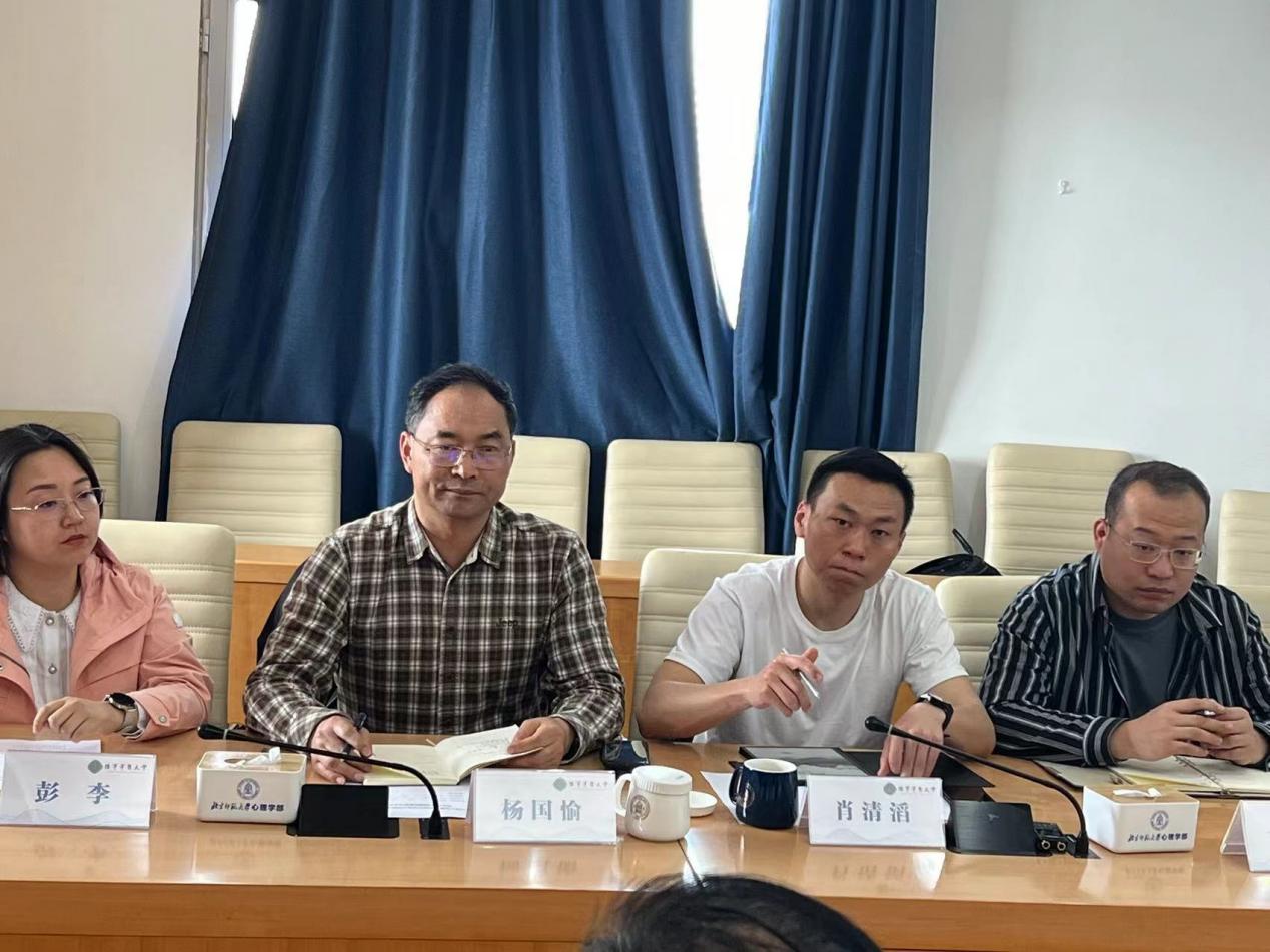 2024年4月8日,中国人民解放军陆军军医大学医学心理系主任杨国愉一行来访98色花堂 并举行座谈交流会。学部党委书记乔志宏、副部长骆方、副部长韩在柱、副部长刘春荣、副部长王君、副部长胡思源、党委副书记闫琰、党委副书记史佳鑫、部长助理韩卓、工会主席刘霞出席座谈。会议由党委书记乔志宏主持。