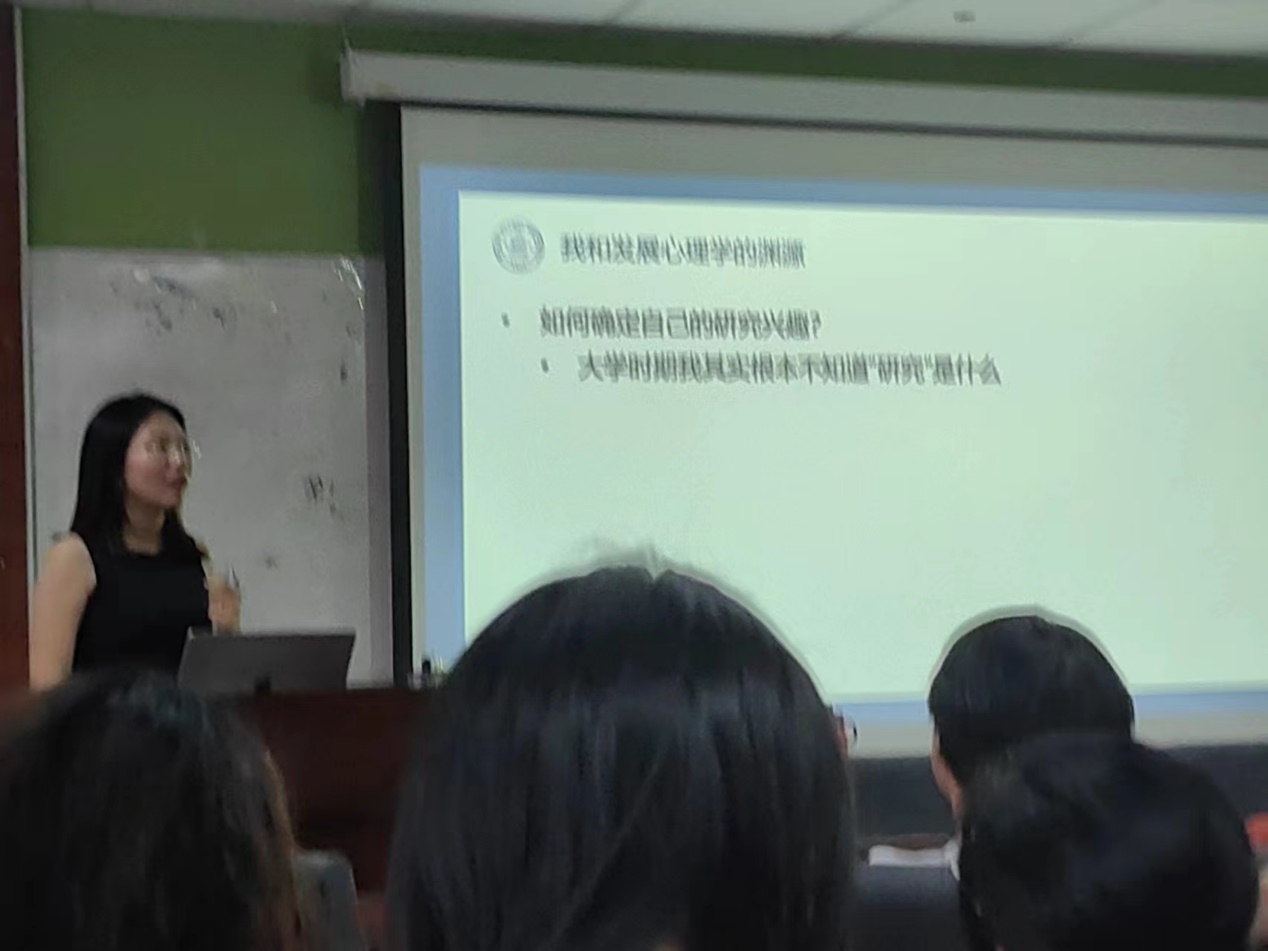 然后,高梦宇老师为我们带来了自己的研究方向,研究家庭和儿童社会情绪性发展,也分享了自己接触心理学的经历。